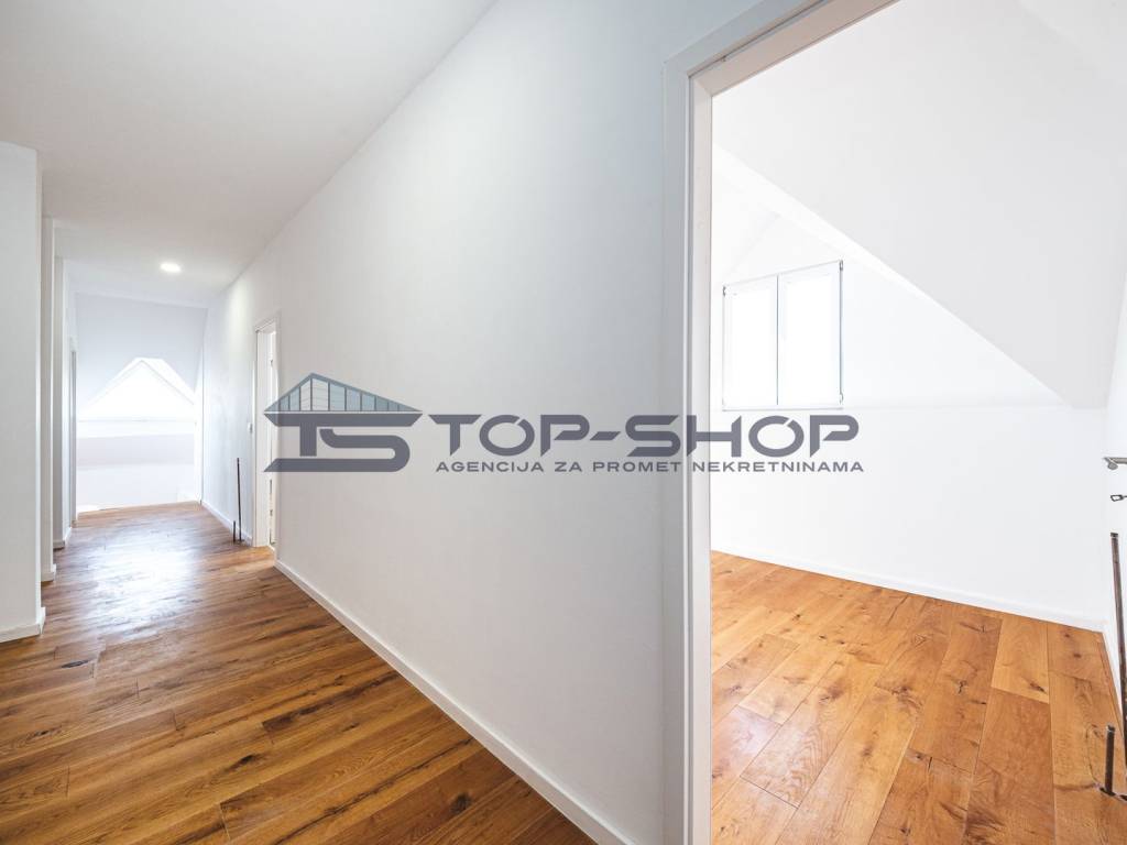 Prva etaža je predviđena za dnevni boravak i kuhinju, dok je druga etaža sa spavaonicama i kupaonicama. 2 kupaonice, 1 wc i 4 spavaće sobe (od kojih 2 imaju vlastitu garderobu) omogučuju izniman komfor u ovoj prekrasnoj novogradnji!