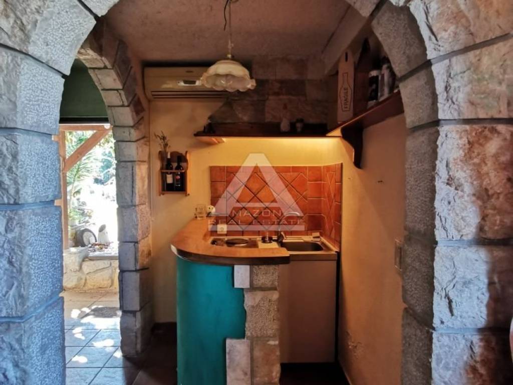 Poreč - zum Verkauf ein Haus von 434 m2, auf einem Grundstück von 1429 m2, nur 1 km vom Stadtzentrum und dem Meer entfernt, mit Meerblick. Das Haus besteht aus dem Erdgeschoss, in dem sich Geschäftsräume befinden, einer Wohnung mit 2 Schlafzimmern und der zweiten Wohnung mit einem Schlafzimmer, während sich im ersten Stock des Hauses zwei Wohnungen mit jeweils zwei Schlafzimmern befinden. Im Hof gibt es eine Taverne und einen schönen Garten. Das Haus wurde 1971 erbaut und 1990 erweitert.