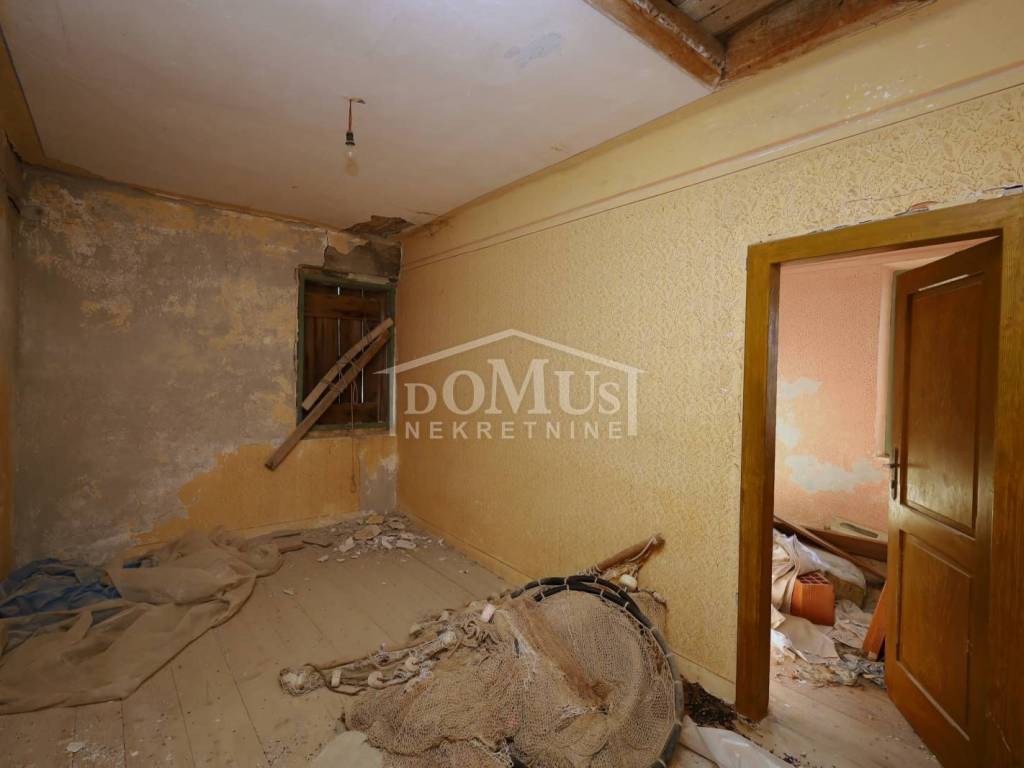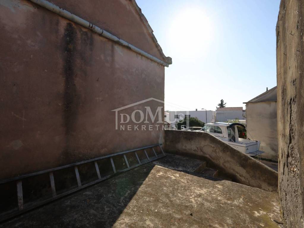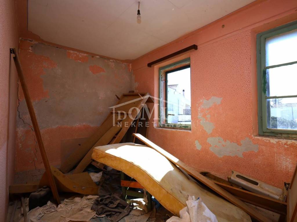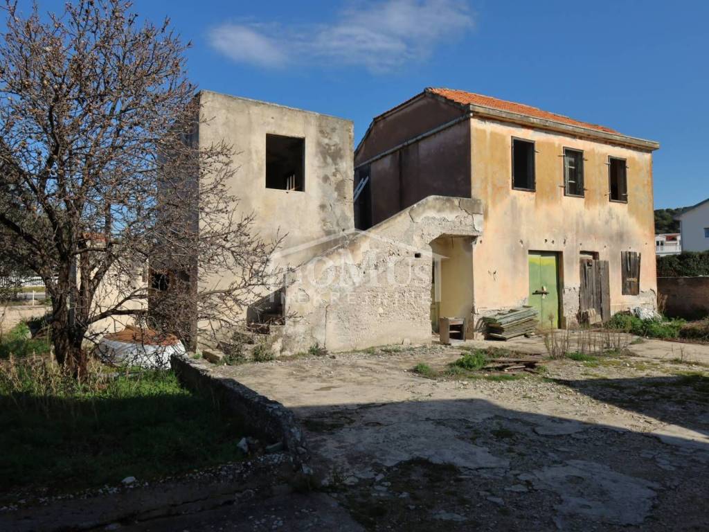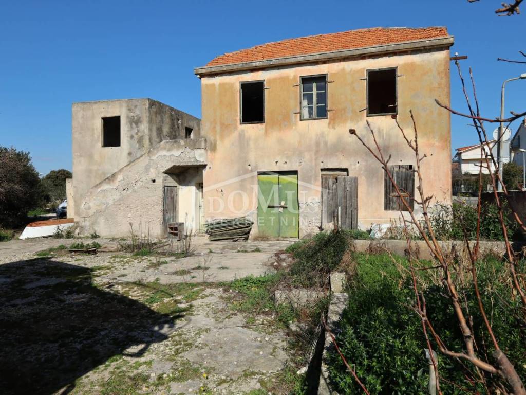 Brodarica, 180 m vom Meer/Strand entfernt, Einfamilienhaus auf zwei Etagen (Erdgeschoss + 1. Stock). Die Gesamtnutzfläche des Hauses beträgt 138,13 m², es wurde auf einem Grundstück von 379 m² errichtet. Das Erdgeschoss des Gebäudes besteht aus einer großen Taverne, Küche, Hauswirtschaftsraum, Abstellraum und Badezimmer. Alle Räume verfügen über separate Eingänge vom Innenhof aus. Über eine Außentreppe gelangt man in die erste Etage des Hauses. Die erste Etage besteht aus einer nicht überdachten Terrasse von 14,71 m², einer Küche, einem separaten Flur und drei Schlafzimmern. Das Haus wurde 1950 erbaut und verfügt über einen Anschluss an die Infrastruktur. Die Geschosskonstruktion besteht überwiegend aus Holz, das Haus ist in baufälligem Zustand, weshalb es nicht bewohnbar ist. Zum Haus gehört ein großzügiger PKW-Stellplatz.