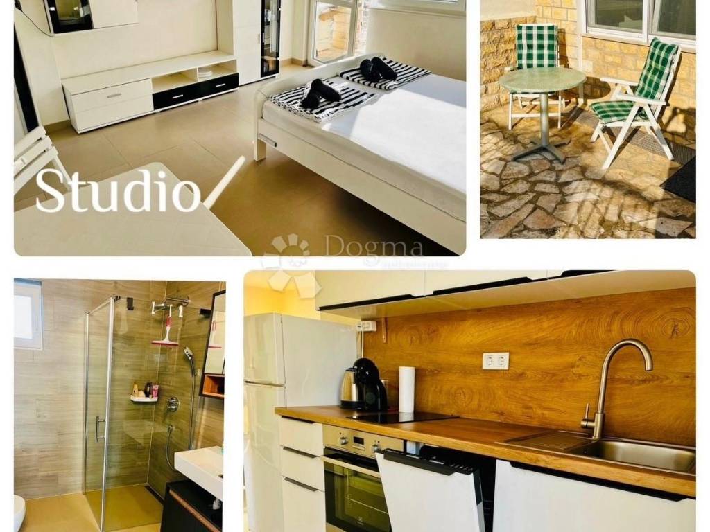 HAUS IN TOPLAGE Zum Verkauf steht ein außergewöhnliches Haus in hervorragender Lage, nur 150 m von wunderschönen Stränden und nur wenige Gehminuten vom Ortszentrum entfernt. Eine Immobilie dieser Art ist eine absolute Seltenheit auf dem Markt. Das Haus besteht aus 5 vollständig eingerichteten und gepflegten Wohneinheiten und eignet sich ideal sowohl für den Eigenbedarf als auch als sichere Investition zur touristischen Vermietung. Aufteilung der Wohneinheiten: 1 größere Wohnung mit 75 m und drei Schlafzimmern 3 Apartments mit je 30 m und einem Schlafzimmer 1 Studio-Apartment mit 30 m Weitere Vorteile: Gesicherter Parkplatz Schön angelegter Garten Grillbereich und Platz für geselliges Beisammensein Gepflegte und komplett ausgestattete Immobilie Ruhige Lage in unmittelbarer Nähe aller wichtigen Einrichtungen Dank der Nähe zum Meer, zu den Stränden und zum Zentrum bietet diese Immobilie eine ideale Kombination aus Wohnqualität und hervorragendem Vermietungspotenzial. Für weitere Informationen oder zur Vereinbarung eines Besichtigungstermins stehen wir Ihnen gerne zur Verfügung.