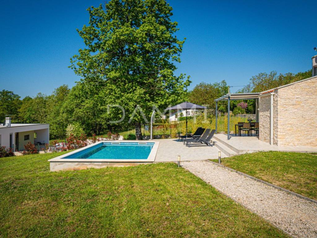 Inmitten der idyllischen istrischen Natur, in der ruhigen und charmanten Siedlung Sveti Petar u Šumi, befindet sich ein modernes Haus, das zeitgemäßes Design mit einem angenehmen Lebensstil verbindet. Diese Immobilie ist die perfekte Wahl für alle, die Privatsphäre, Ruhe und eine Flucht vor dem hektischen Alltag suchen.