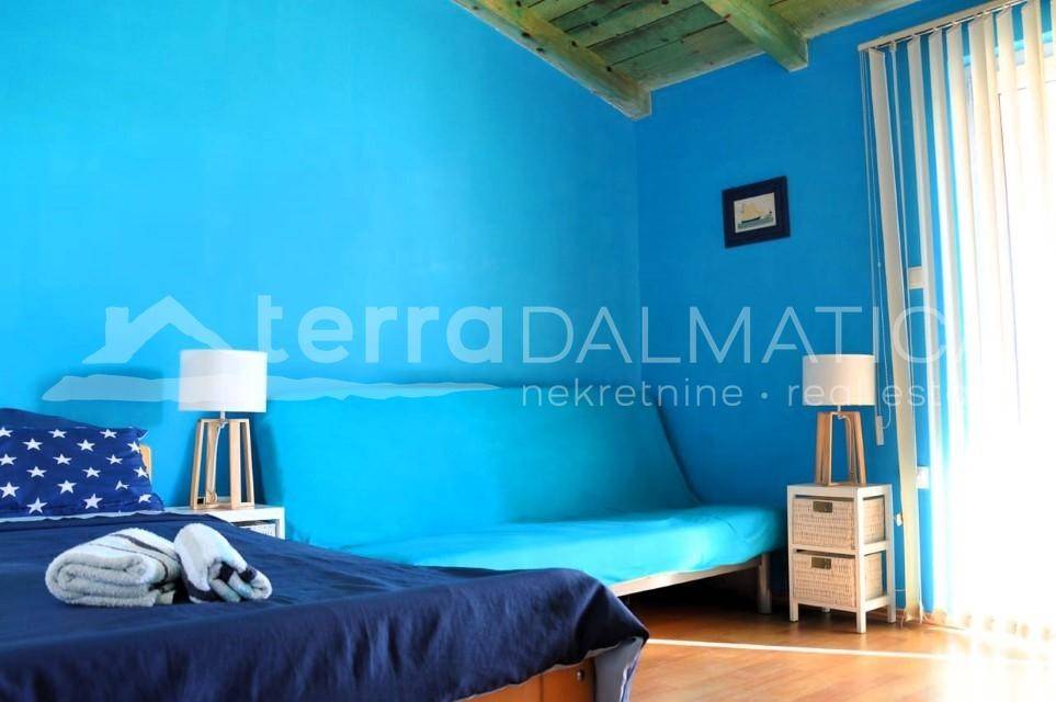 Zu verkaufen ist ein Haus mit zwei separaten Wohneinheiten und einer Gesamtfläche von 70 m², gelegen in der ruhigen und attraktiven Siedlung Jadrija. Das Anwesen befindet sich auf einem Grundstück von ca. 120 m², das von Hrvatske šume erworben werden muss. Objektbeschreibung: Erdgeschoss: Es besteht aus einem Eingangsbereich mit Küchenzeile, einem kleineren Schlafzimmer, einem Badezimmer und einem großen Schlafzimmer, das je nach Bedarf der zukünftigen Eigentümer auch als Wohnzimmer dienen kann. Erster Stock: Es besteht aus einer Küche mit Esszimmer, einem Schlafzimmer, einem Badezimmer und einem Wohnzimmer mit Zugang zu einer Terrasse mit wunderschönem Meerblick. Im ersten Stock gibt es zwei weitere Terrassen – eine neben dem Schlafzimmer und die andere neben der Küche, ideal zum Grillen und Genießen der Natur. Hof: Der Hof ist mit zwei Nebengebäuden und einer Außenküche mit Grill ausgestattet, die ideale Bedingungen zum Entspannen und Geselligkeit an der frischen Luft bietet. Lage: Jadrija ist einer der beliebtesten Wochenend- und Badeorte der Einwohner von Šibenik und liegt am berühmten St.-Antonius-Kanal. Diese Perle stammt aus dem Jahr 1922 und bietet Genuss im kristallklaren Meer mit Blick auf die Festung St. Nikolaus und die Insel Zlarin – das Juwel des Šibenik-Archipels. Das Gebiet ist flach, was es perfekt für Radsportbegeisterte und Familienwanderungen macht. Diese Immobilie stellt eine großartige Gelegenheit für eine Investition oder ein ruhiges Familienleben an einem der schönsten Orte Dalmatiens dar. Für weitere Informationen oder um eine Besichtigung zu vereinbaren, kontaktieren Sie uns!