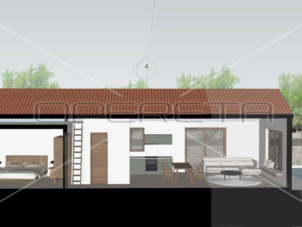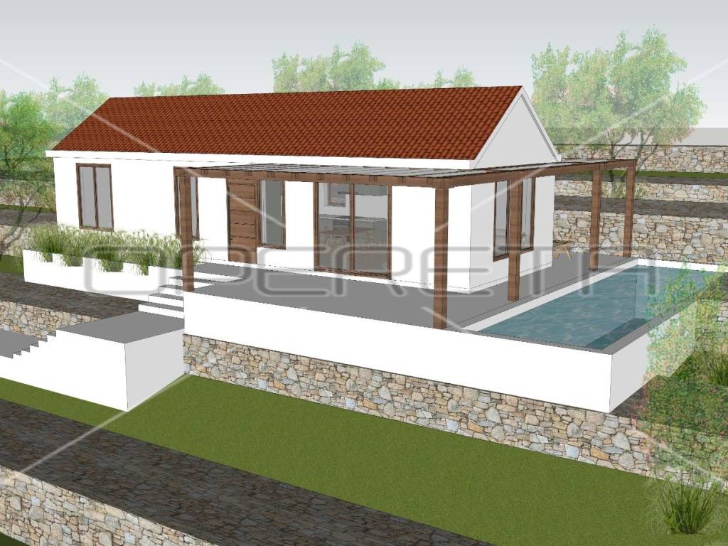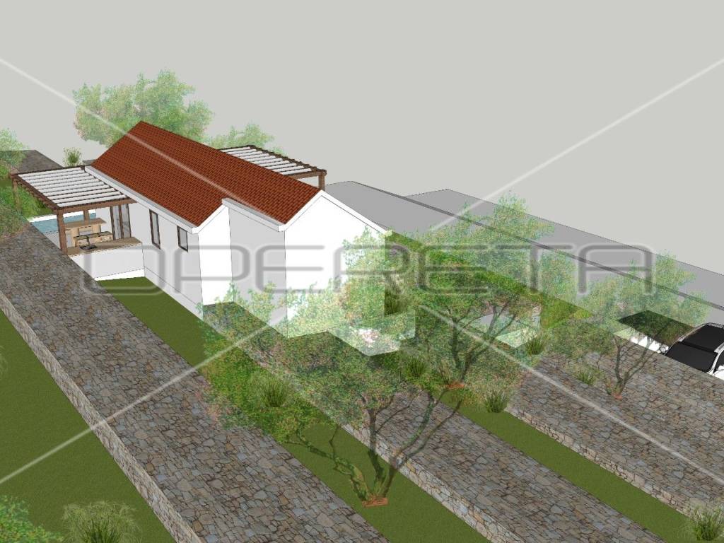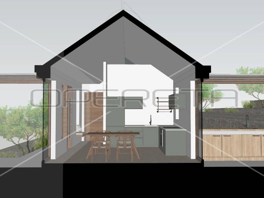 Auf dem Grundstück befindet sich ein altes Steinhaus von 51 m, das seit mehr als 60 Jahren dort steht. Obwohl das Haus eine vollständige Renovierung erfordert, verfügt es bereits über eine Hausnummer und eine Baugenehmigung. Laut den gesetzlichen Bestimmungen muss die ursprüngliche Struktur erhalten bleiben, um das kulturelle Erbe zu bewahren. Der Grundriss des Hauses beträgt 12,68 m x 4,10 m, mit einer Höhe von 1,90 m, und das Gebäude ist ein freistehendes Erdgeschoss.