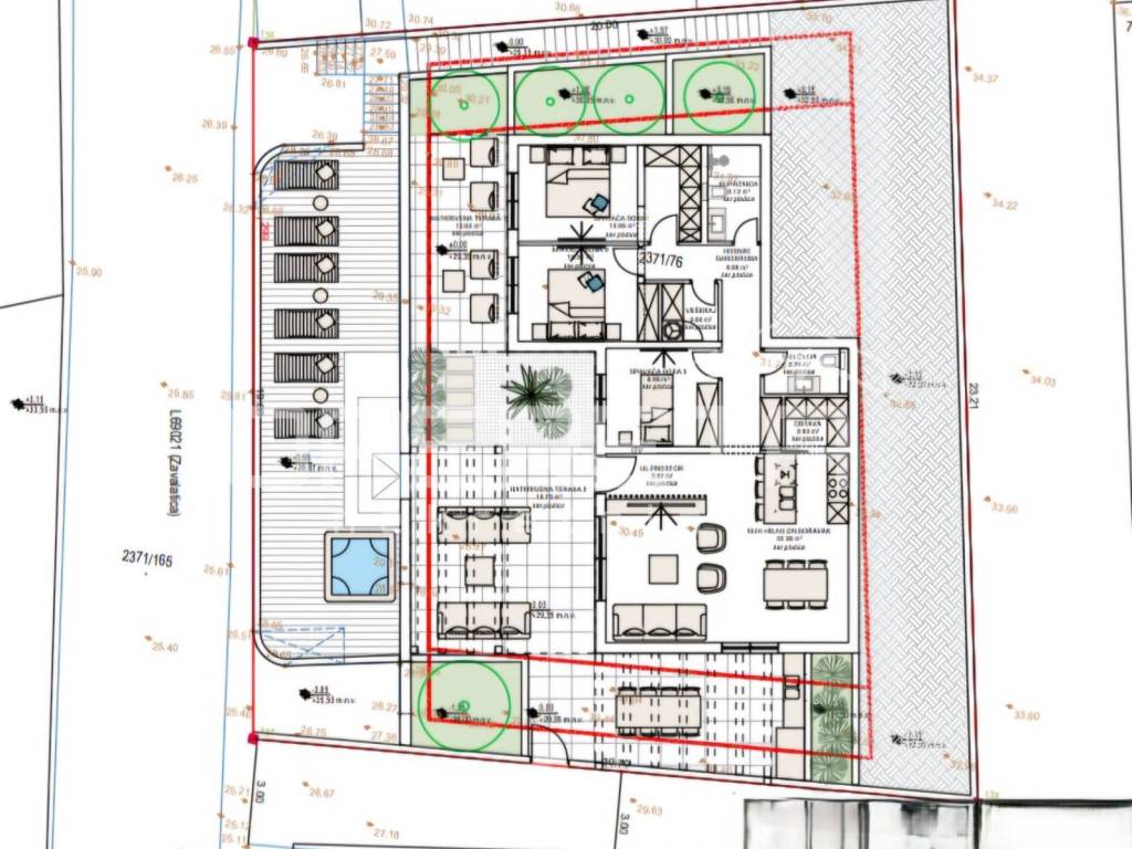 Das Grundstück befindet sich in einem bereits bebauten Siedlungsgebiet und ist als Wohngebiet ausgewiesen. Die Bauarbeiten haben bereits begonnen, und es wurde ein kleineres Objekt eine geschlossene Garage errichtet. Für das bestehende Gebäude liegt vollständige Dokumentation vor. Zudem ist ein Konzeptentwurf für ein Einfamilienhaus erstellt worden, sowie eine gültige Baugenehmigung für die Fortsetzung des Bauvorhabens.