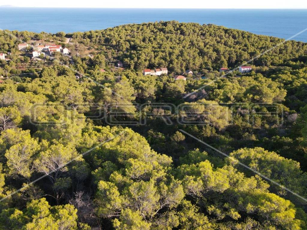 Es liegt an einem sanft abgestuften Hang, der eine optimale Nutzung des Sonnenlichts für den Anbau ermöglicht. Vom höchsten Punkt des Grundstücks bietet sich ein atemberaubender Blick auf das Meer und die Inseln Budihovac, Korčula und Lastovo.