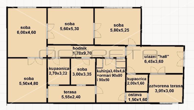 Prodaje se prekrasan građanski stan u užem centru grada, na odličnoj lokaciji, nadomak svih sadržaja, pogodan za komforno stanovanje ili poslovnu djelatnost, koji se sastoji od velikog ulaznog prostora, četiri velike sobe, djevojačke sobe, prostrane kupaonice, kuhinje s izlazom na terasu koja je orijentirana na dvorište, ostave, dodatne manje kupaonice i zatvorene terase. Stan je za adaptaciju. Stanu pripada spremište u podrumu.