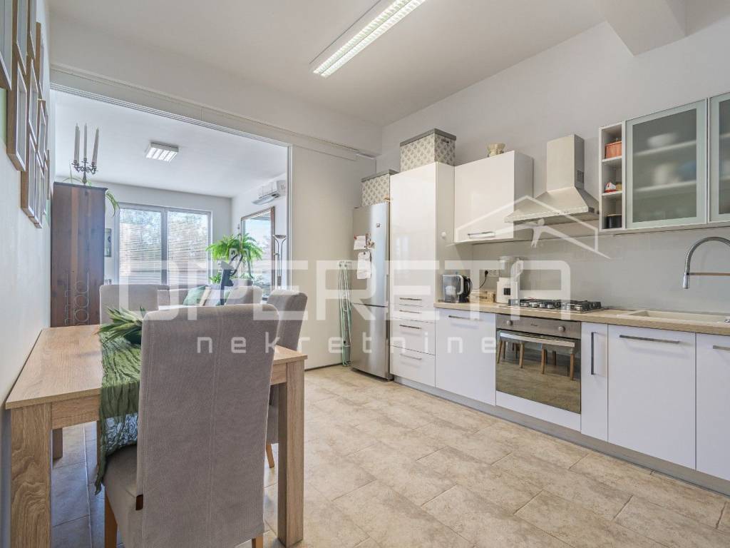 Wir präsentieren eine außergewöhnliche Immobilie im Erdgeschoss eines kleineren Wohngebäudes, die aus zwei vollständig ausgestatteten Wohneinheiten, einem Geschäftsraum, einem großzügigen Garten, einem Pool mit Sonnenterrasse sowie sechs Parkplätzen im eingezäunten Hof besteht. Zusätzlichen Wert bietet ein Gartenhaus, ideal als Abstellraum oder für weitere Nutzungsmöglichkeiten.