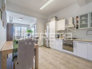 Der Pool mit Sonnenterrasse mit einer Gesamtfläche von 126 m befindet sich im gepflegten Garten und Hof von 221 m, was Privatsphäre und Komfort in den warmen Monaten garantiert. Die Immobilie bietet außerdem die Möglichkeit, beide Wohnungen zu einer größeren Wohneinheit zusammenzuführen, was das Investitionspotenzial zusätzlich erhöht.