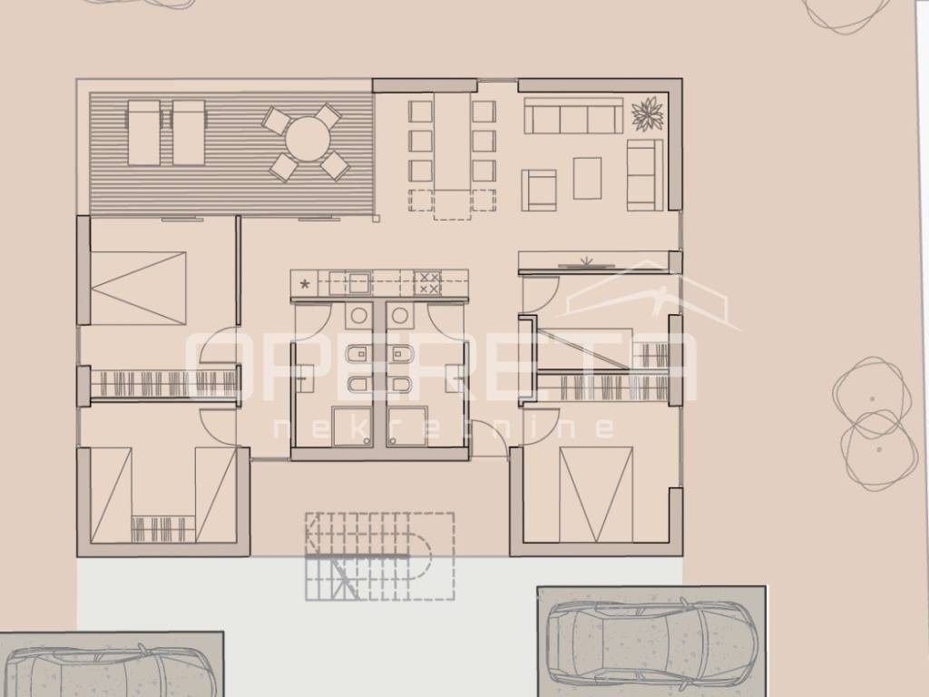 Zu jeder Einheit gehören zwei Parkplätze am Grundstückseingang, die nicht im Wohnungspreis inbegriffen sind.