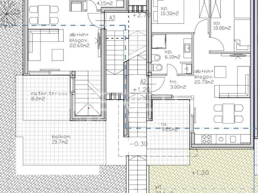 Nach der Berechnung gemäß einem bestimmten Koeffizienten hat Wohnung A2 71,92 m2.