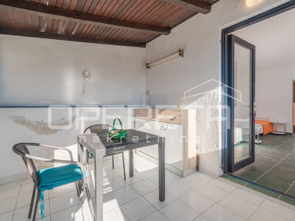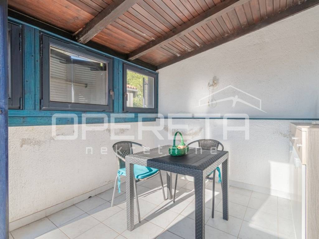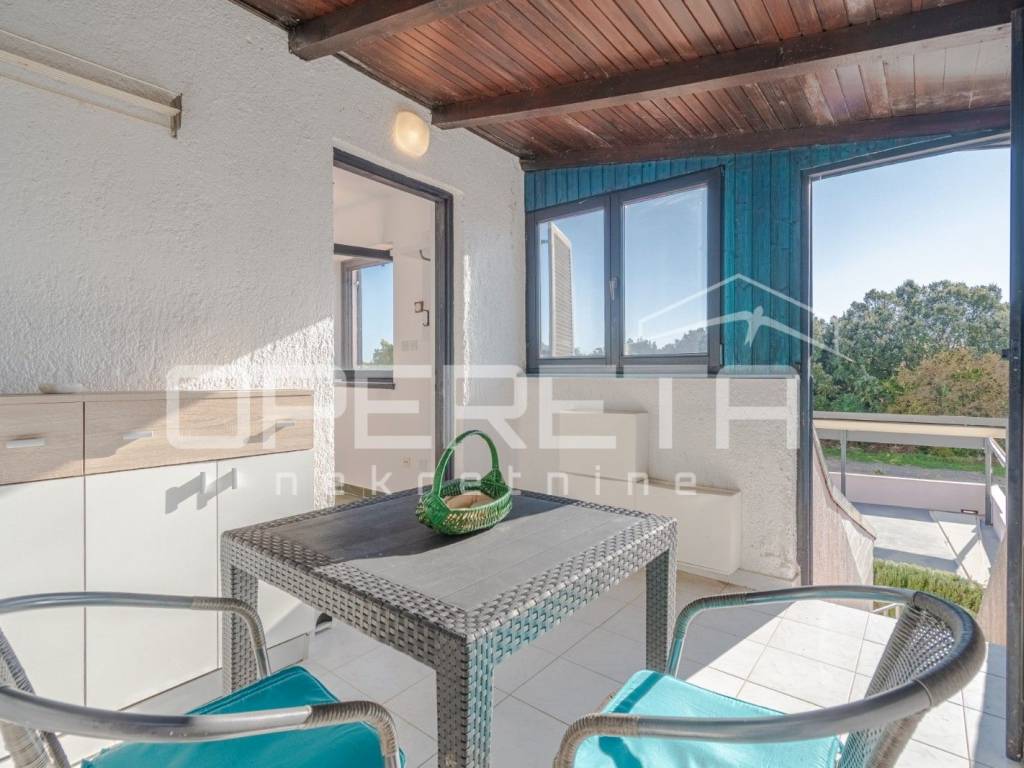 Prodaje se apartman površine 30,5 m, od čega 7 m čini zatvorena terasa idealna za boravak tijekom cijele godine. Apartman se nalazi na odličnoj lokaciji, svega 300 metara od mora i plaže.