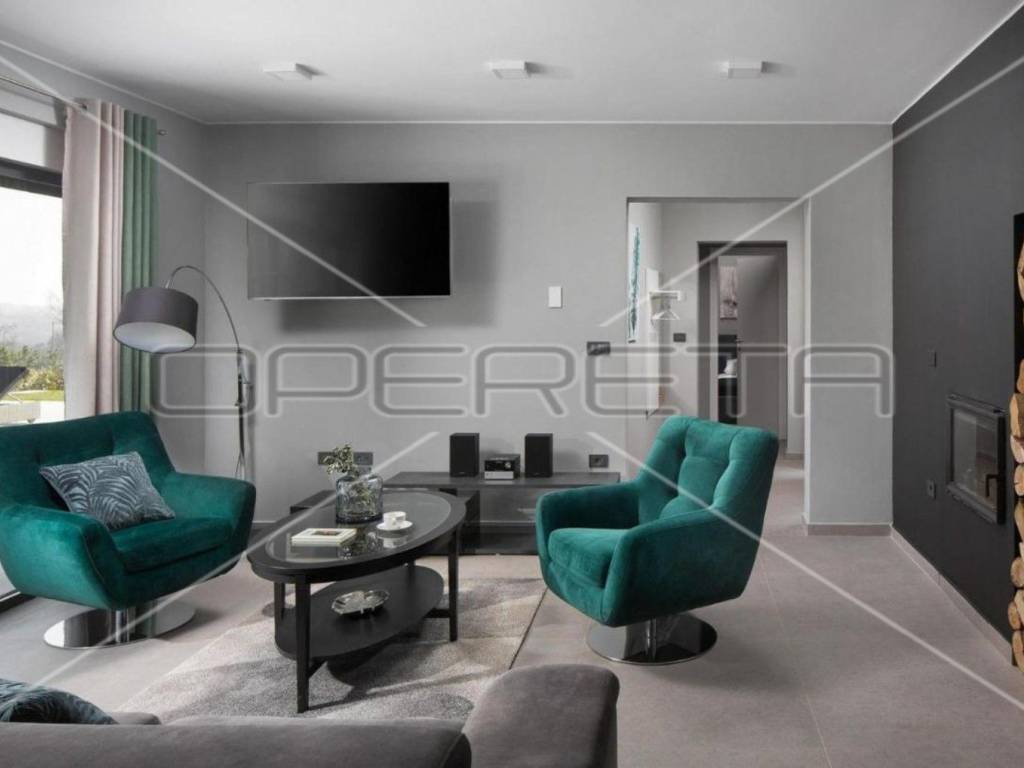 Die Villa verfügt über Fußbodenheizung, einen Kamin im Wohnzimmer und Gebläsekonvektoren in jedem Raum.