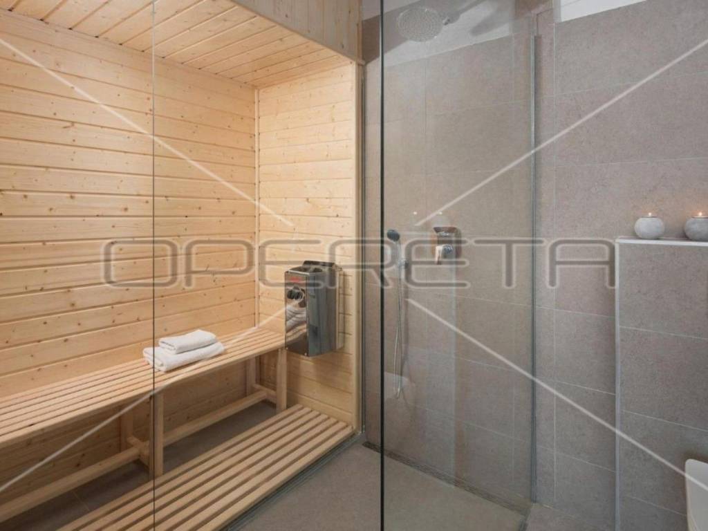 Auf der Terrasse gibt es eine Sommerküche mit Tisch für Zusammenkünfte, einen zusätzlichen Raum mit Sauna und ein Badezimmer.