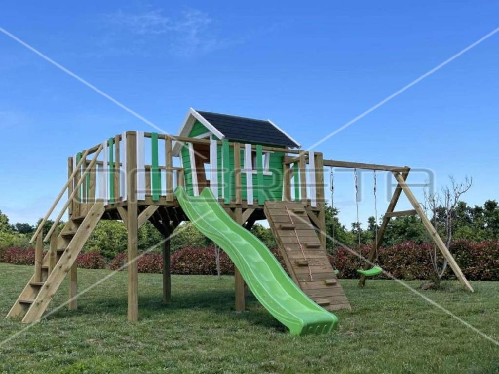 Der äußere Teil besteht außerdem aus eingezäunten Parkplätzen (4-5), einem Kinderspielplatz und einem zusätzlichen kleinen Gebäude als Lager.