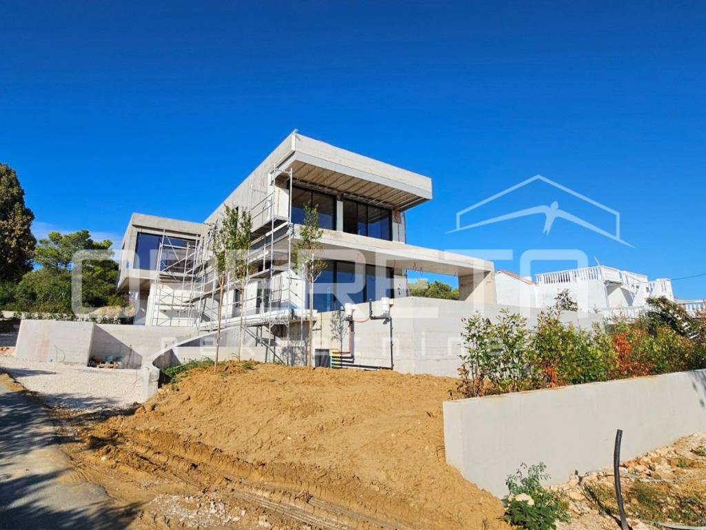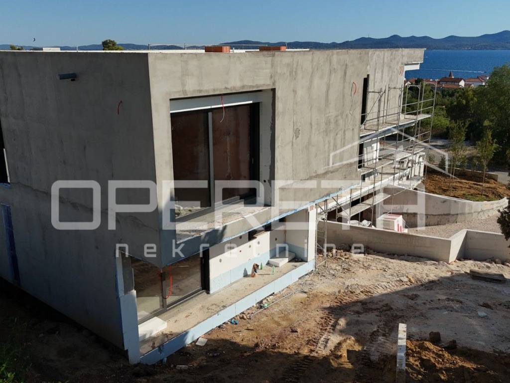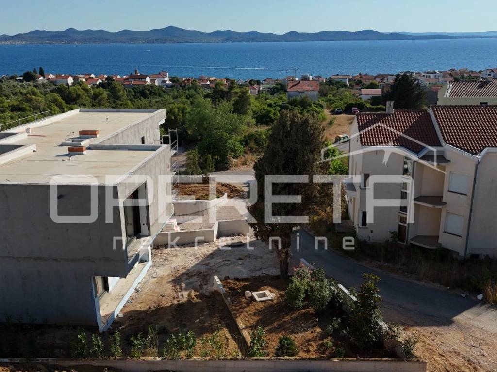 ZADAR - Luxusvilla mit Pool und Meerblick in Diklo Eine moderne Villa auf einem Hügel mit Meerblick im ruhigen Stadtteil Diklo, nur 500 Meter vom Strand entfernt. Dank ihrer Südausrichtung bietet die Villa spektakuläre Meerblicke und optimale Sonnenausrichtung das ganze Jahr über.