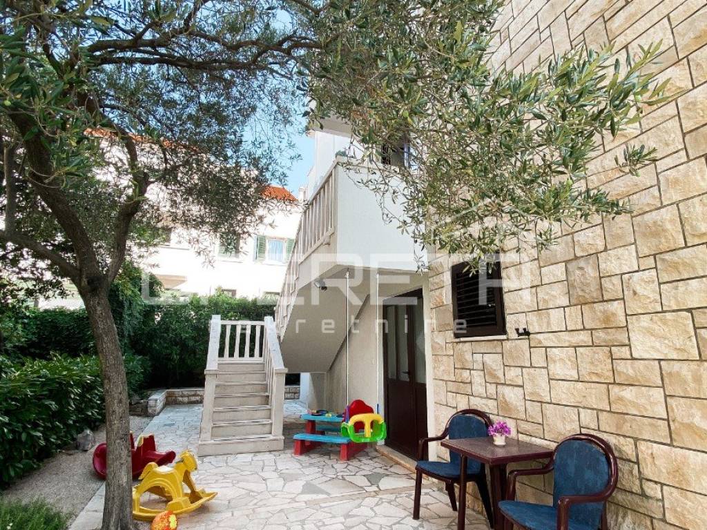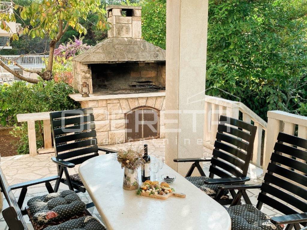 Das Grundstück ist gepflegt und mit Obstbäumen Feigen, Zitronen, Mandarinen und Oliven bereichert. Im Garten befindet sich ein Außenbereich mit einem großen Steintisch und einem Grill sowie ein Solarium aus weißem Brač-Stein der perfekte Ort zum Sonnenbaden und Entspannen.