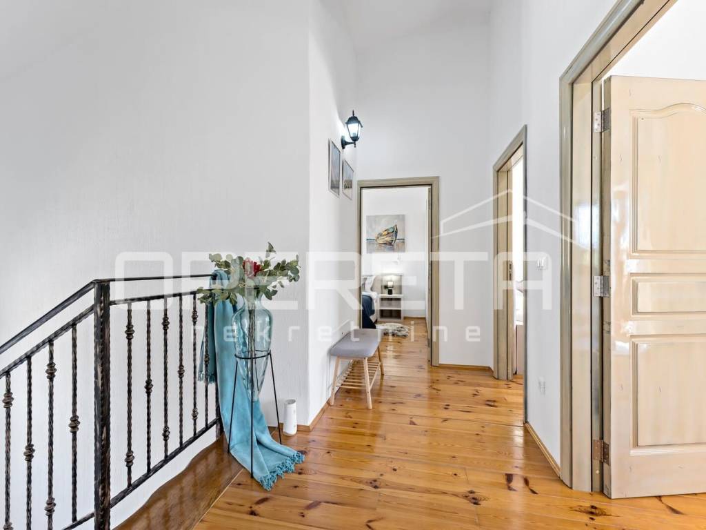 Das Haus wurde 2008 erbaut und 2024 renoviert. Es erstreckt sich über Erdgeschoss und Obergeschoss. Im Erdgeschoss befinden sich ein Flur, ein Wohnzimmer mit Küche und Essbereich sowie Zugang zu einer schönen überdachten Terrasse, ein Abstellraum, ein Schlafzimmer und ein Badezimmer. Im Obergeschoss befinden sich drei Schlafzimmer und zwei Badezimmer. Zwei Zimmer verfügen über einen eigenen Balkon mit herrlichem Panoramablick. Die Villa wird möbliert verkauft; die Möbel wurden 2025 neu angeschafft. Jedes Zimmer ist mit einer Klimaanlage ausgestattet. Die Badezimmer verfügen über elektrische Fußbodenheizung. Die Villa ist im Landhausstil eingerichtet und kombiniert Stein und Holz, was ihr einen authentischen Charme verleiht. Der Außenbereich besteht aus einem angelegten und umzäunten Garten mit mediterranen Pflanzen.