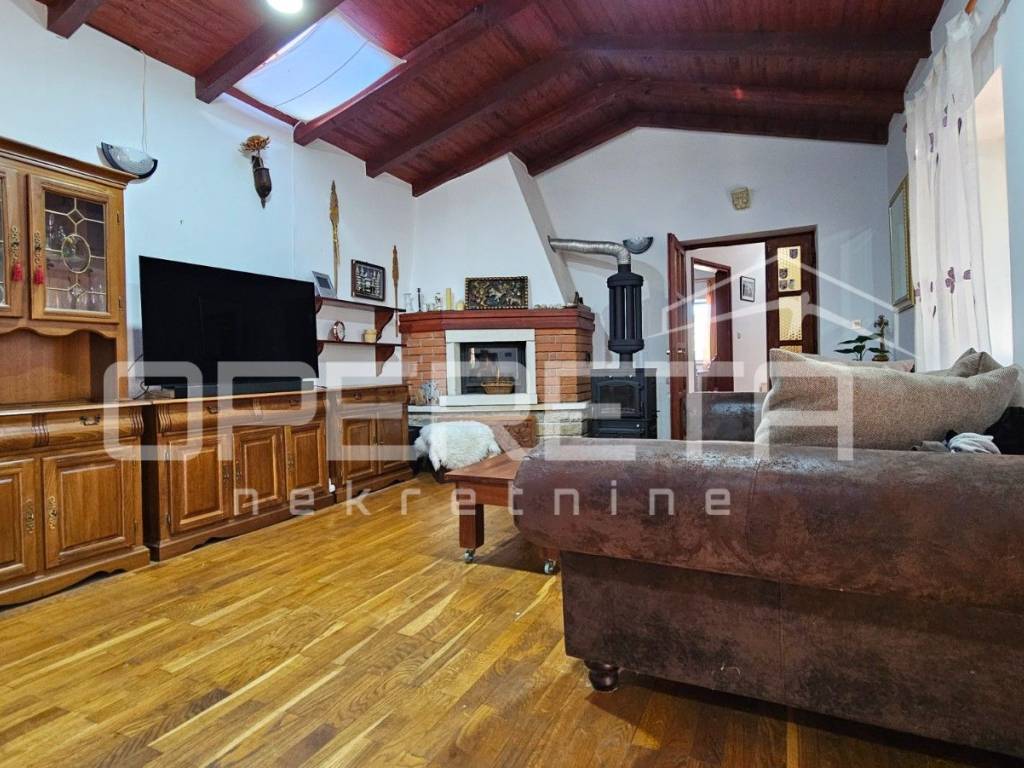 Der Innenbereich ist warm und geräumig, mit einem großen Wohnzimmer, in dem der Kamin für eine besondere Atmosphäre sorgt. Der Wohnraum ist natürlich mit der Küche und dem Essbereich verbunden, und das Haus verfügt über drei Schlafzimmer sowie ein ausgestattetes Badezimmer. Es ist klimatisiert, gepflegt und sofort bezugsfertig, und wurde gelegentlich auch touristisch vermietet.