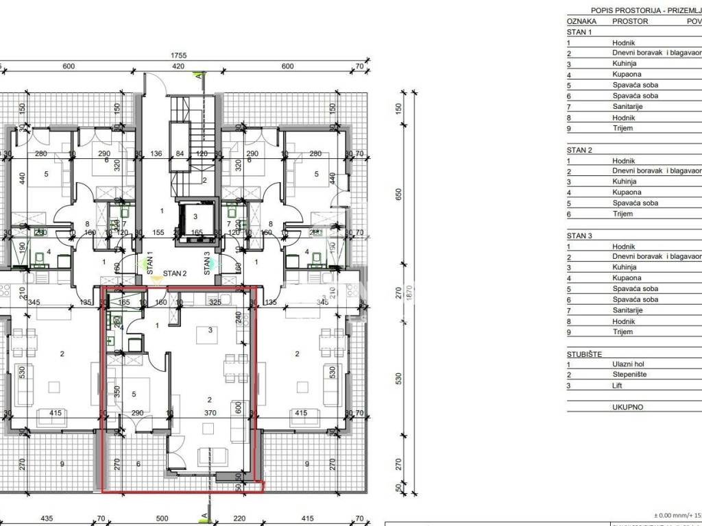 Die Nettonutzfläche der Wohnung beträgt 53,87 m2. Die Wohnung besteht aus einer Eingangshalle, einem Wohnzimmer mit Küche, einem Schlafzimmer, einem Badezimmer und Terrasse von 9,6 m2. Die Wohnung verfügt über einen Aufzug und verfügt über einen externen Abstellraum von 3,5 m2 und 1 Parkplatz.