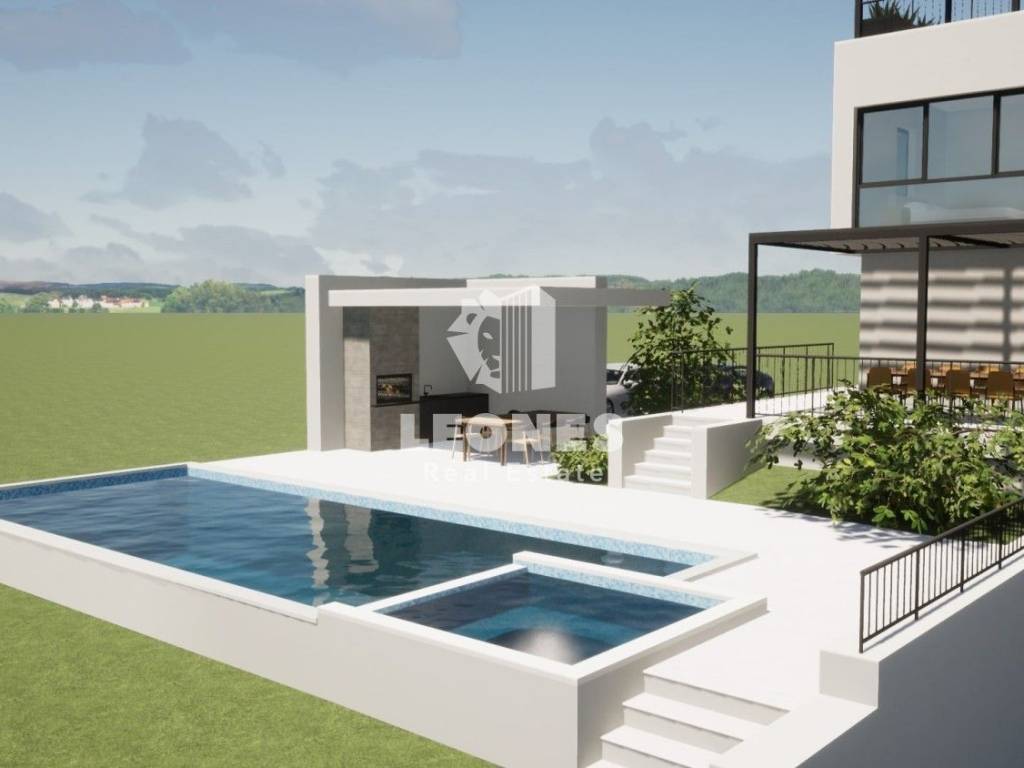 Zum Verkauf steht eine schöne freistehende Villa mit Swimmingpool und Meerblick in Kaštelir. Diese imposante Villa wird 323 m groß sein und sich über drei Etagen verteilen. Der Kellerteil ist für eine Sauna, einen Technikraum, einen Abstellraum, einen Fitnessraum und eine Garage vorgesehen. Im ersten Stock gibt es ein offenes Wohnzimmer mit Blick auf das Meer, eine Küche mit Esszimmer, ein Schlafzimmer, ein Badezimmer und eine Toilette. Im zweiten Stock gibt es vier weitere Schlafzimmer mit drei Badezimmern. Auf der überdachten Dachterrasse genießen Sie mit Sicherheit einen hervorragenden Blick auf das Meer. Die Heizung und Kühlung dieser schönen Villa erfolgt über Fußbodenheizung und Klimaanlage.