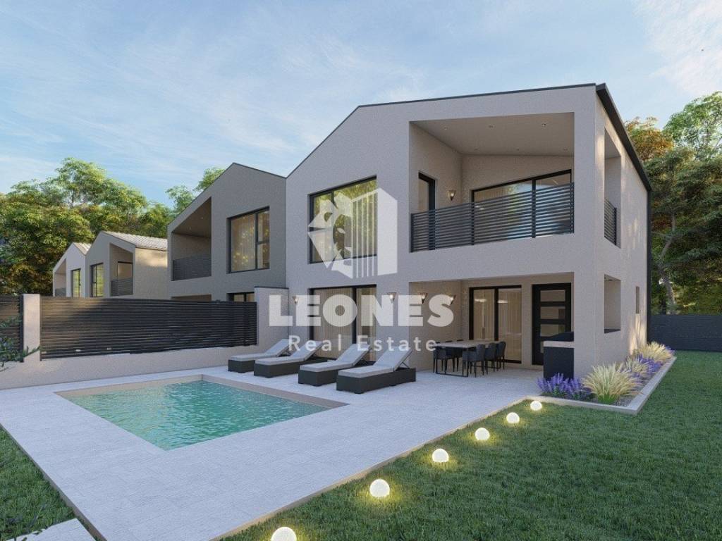 In Buje steht eine moderne Doppelhaushälfte mit Swimmingpool zum Verkauf. Die Fläche des Hauses beträgt 120 m2, während die Fläche des Gartens 330 m2 beträgt, wo sich der 18 m2 große Pool befinden wird. Das Haus besteht aus einem Wohnzimmer, einer Küche, einem Abstellraum, einer Terrasse, 3 Schlafzimmern und 3 Badezimmern. Für die Fußbodenheizung sorgt eine Wärmepumpe, für die Kühlung sorgt eine Klimaanlage. Es verfügt über 2 Parkplätze.