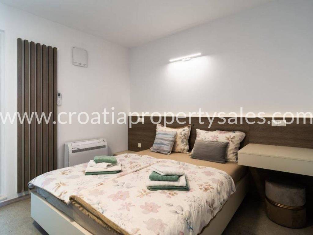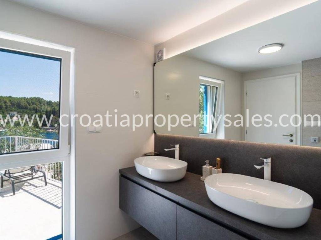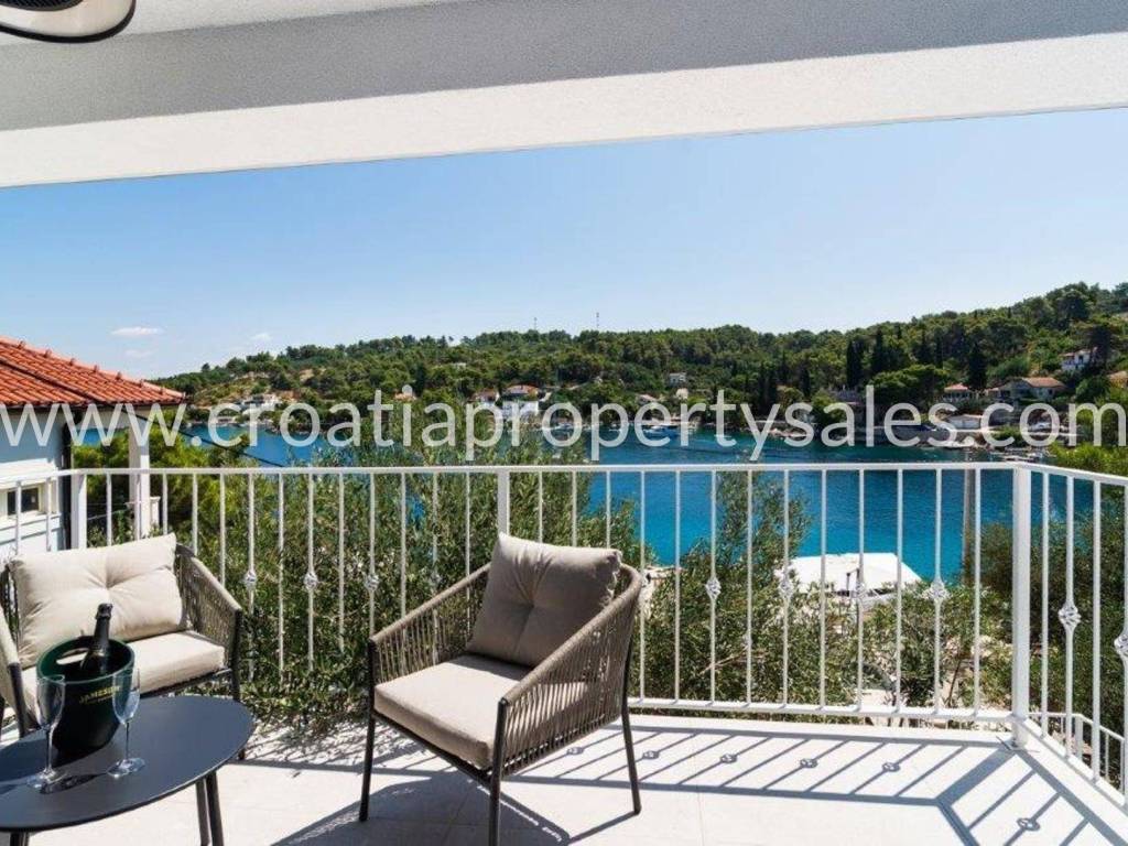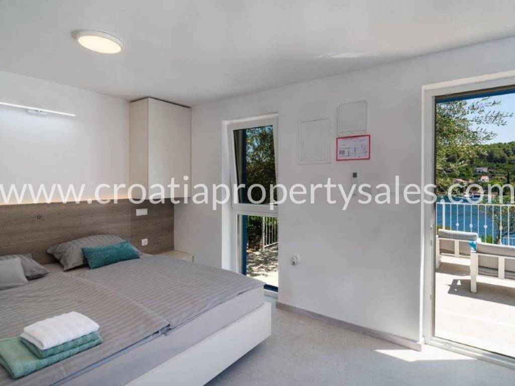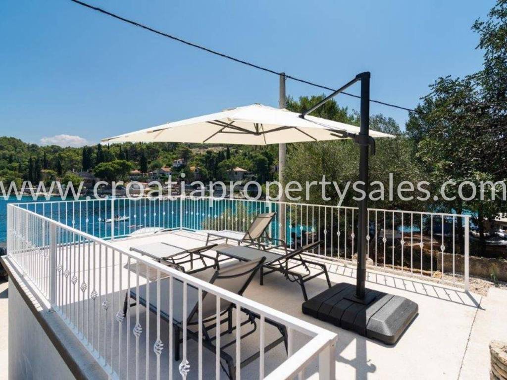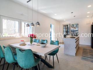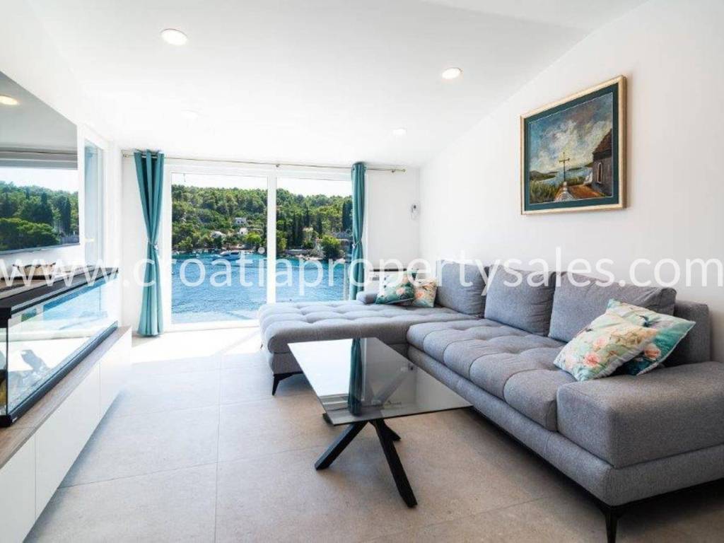 Wunderschönes Luxushaus in erster Reihe zum Meer. Es befindet sich in wunderschöner Lage in einem kleinen malerischen Dorf in der Nähe einer Bucht mit Strand. Das Grundstück ist 522 m2 groß. Das Haus erstreckt sich über zwei Etagen und hat eine Gesamtfläche von 125 m2.Im Erdgeschoss befinden sich ein geräumiges Wohnzimmer, eine Küche mit Esszimmer, ein Flur, zwei Schlafzimmer und zwei Badezimmer. Vom Wohnzimmer aus gelangt man auf die Terrasse mit freiem Meerblick.Im ersten Stock befinden sich ein Schlafzimmer mit Balkon und ein Badezimmer. Der Garten ist reich an mediterranen Pflanzen, eine zusätzliche Terrasse direkt am Meer, ein Außensitzplatz mit Grill, eine Außenküche und eine Dusche. Das gesamte Haus ist luxuriös und modern eingerichtet und erfordert keine zusätzlichen Investitionen. Es wurde 2025 komplett renoviert (Innen- und Außenrenovierung), alle Installationen wurden ausgetauscht, eine Fußbodenheizung wurde installiert, und auch die Möbel und Haushaltsgeräte sind neu. Vor dem Haus führt eine Treppe direkt zum Meer. Das Haus verfügt über eine Autozufahrt und zwei Stellplätze (eine Garage 20 m2). Es liegt nur wenige Gehminuten vom Zentrum der Kleinstadt entfernt.