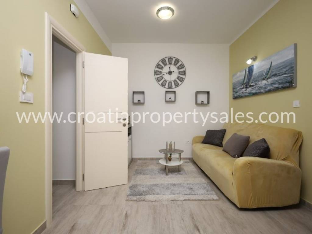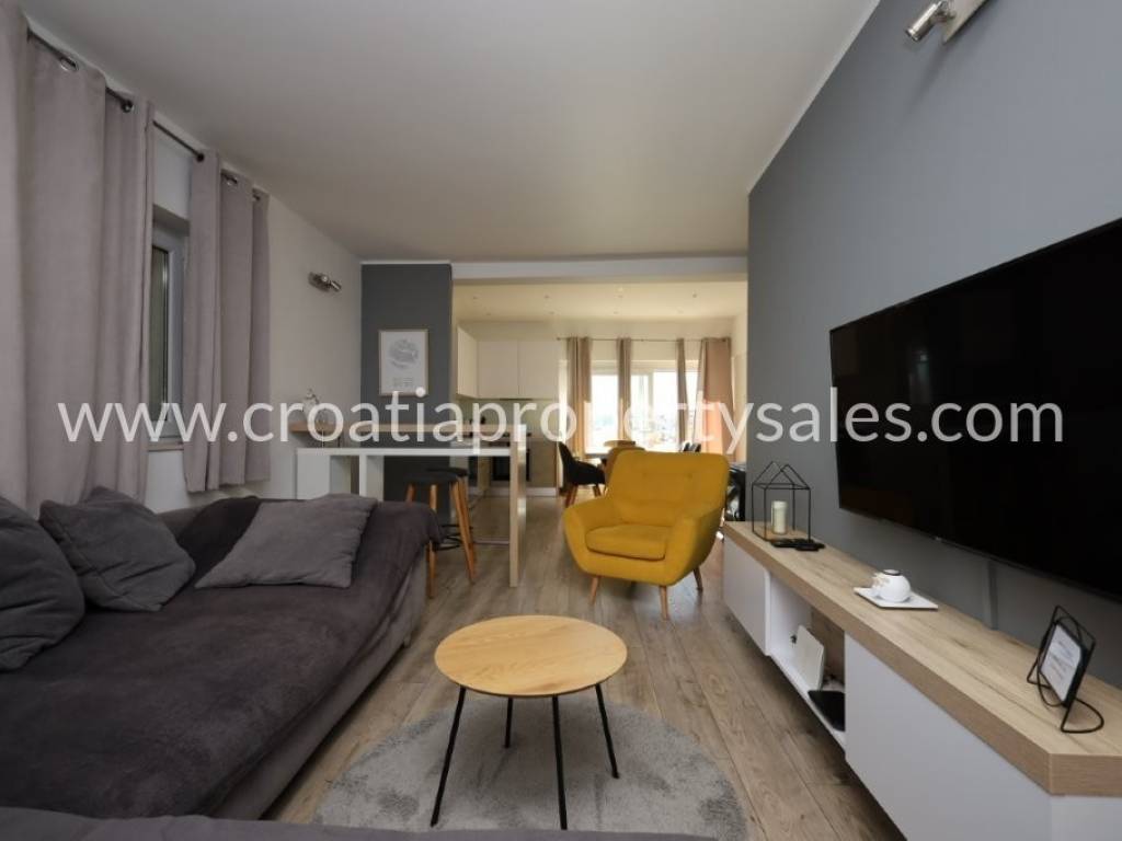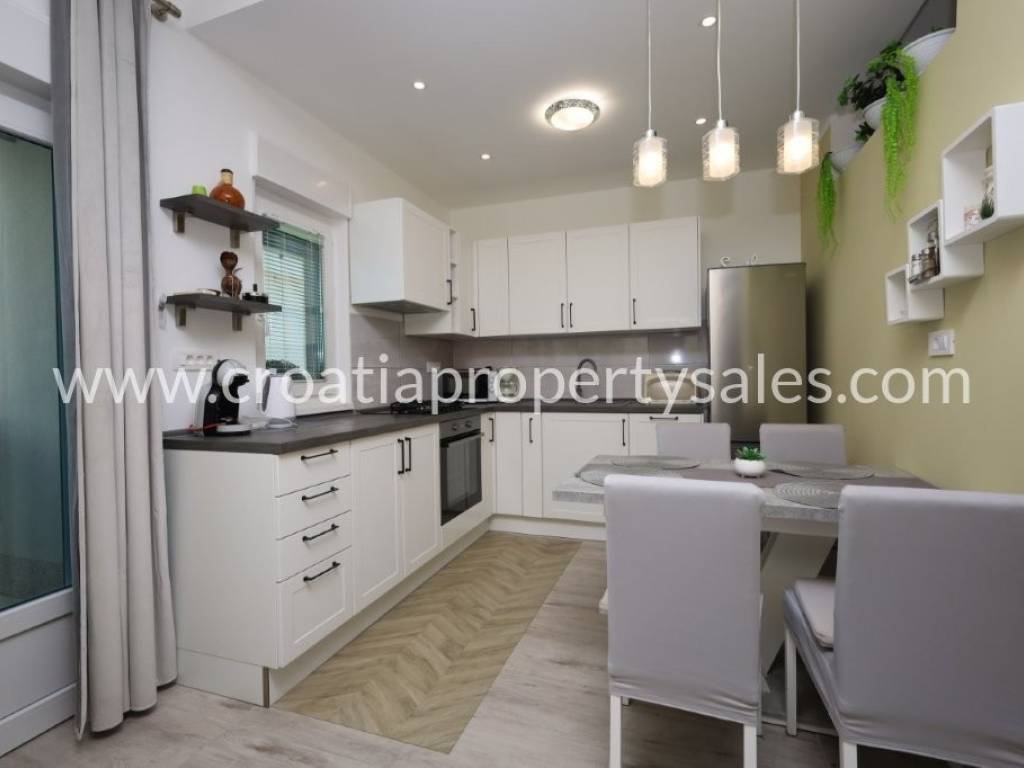 Die Wohnung im Erdgeschoss besteht aus einem geräumigen Wohnzimmer und Esszimmer mit Küche, 2 Schlafzimmern und einem Badezimmer.