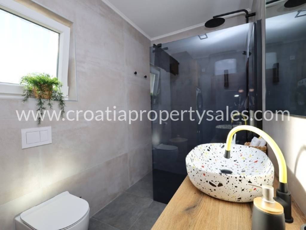 Familienhaus auf 3 Etagen mit 3 Wohnungen, einem Geschäftslokal und einer Taverne in einem Dorf unweit von Sibenik.