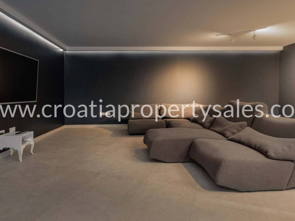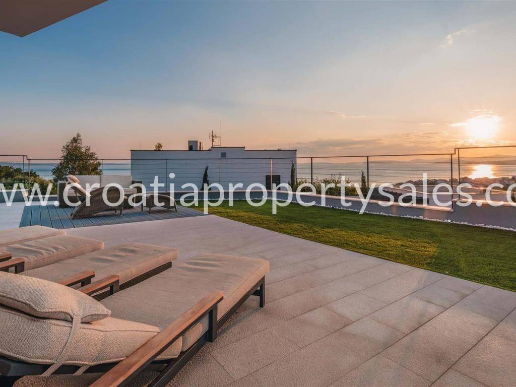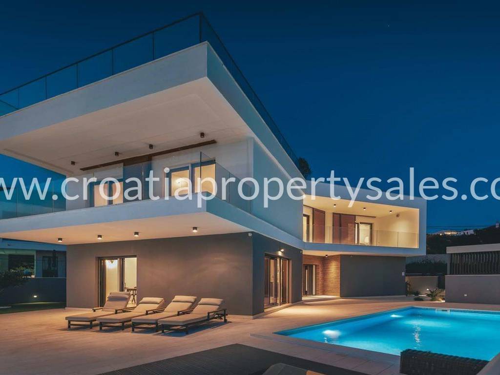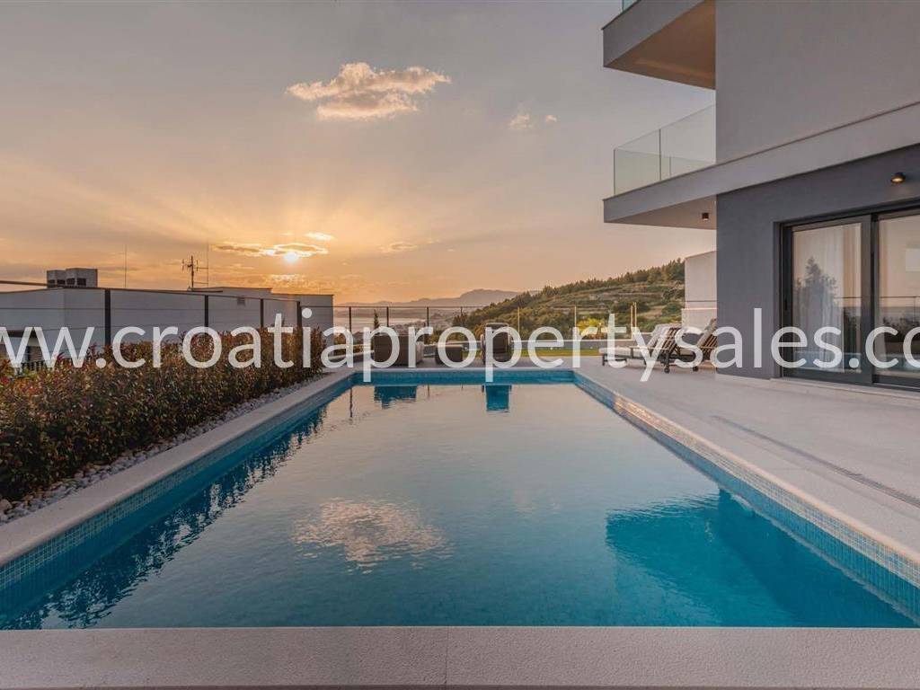 Diese auf einem Grundstück von 916 m2 erbaute Villa befindet sich in einer sehr begehrten Lage, umgeben von ähnlichen Villen und nur wenige Kilometer südlich von Split.