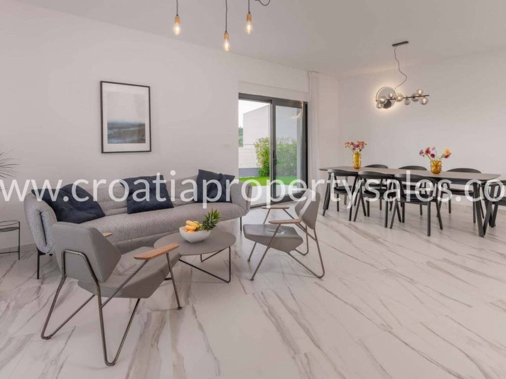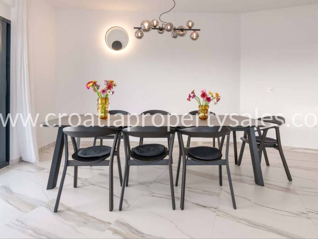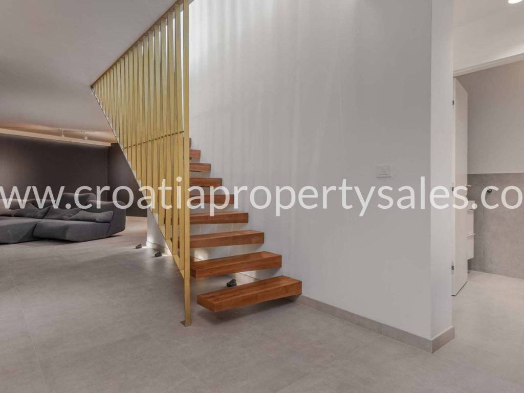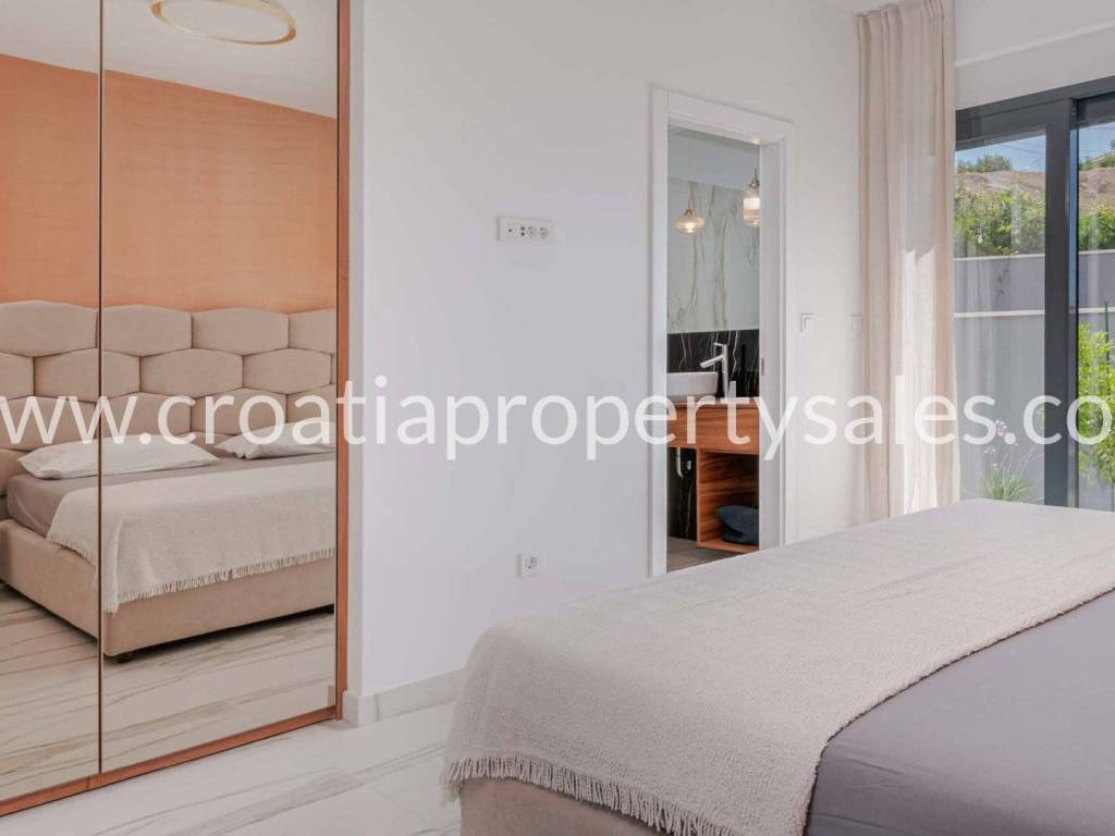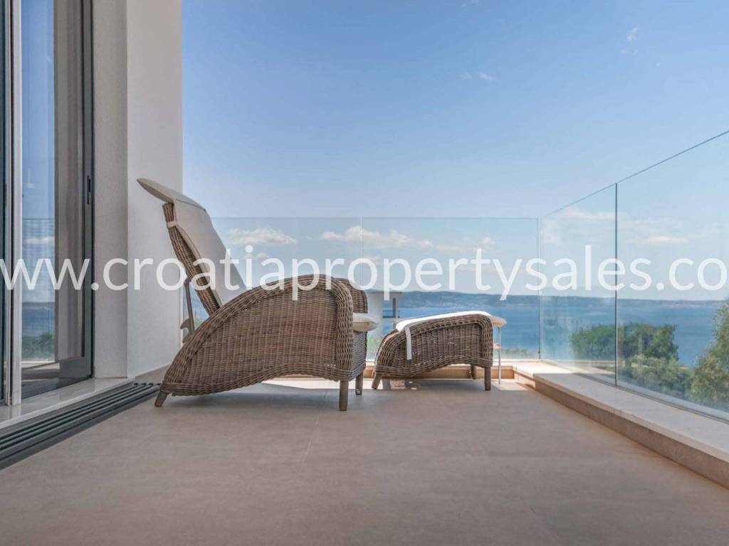 Diese auf einem Grundstück von 916 m2 erbaute Villa befindet sich in einer sehr begehrten Lage, umgeben von ähnlichen Villen und nur wenige Kilometer südlich von Split.