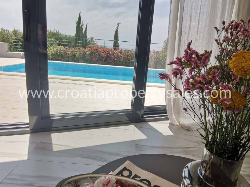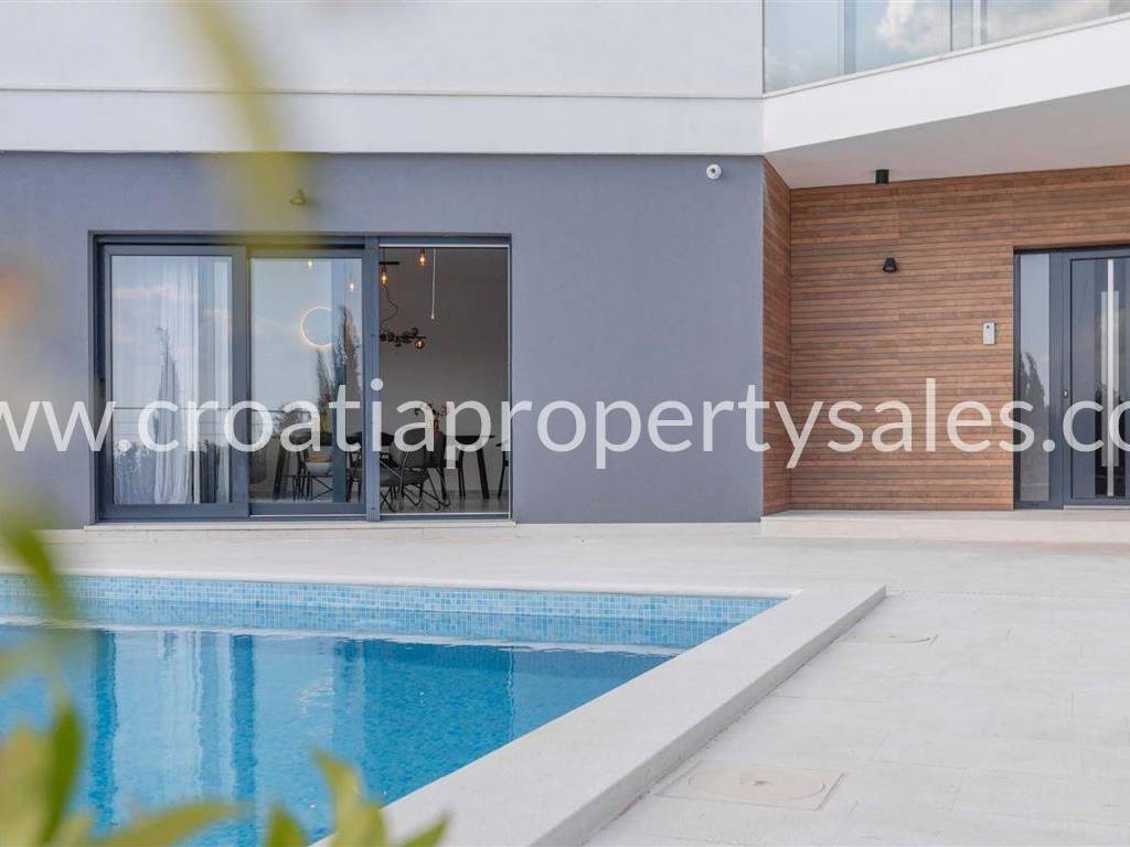 Wir bieten zum Verkauf eine Villa in moderner Architektur mit Swimmingpool und wunderschönem Blick auf das Meer an.