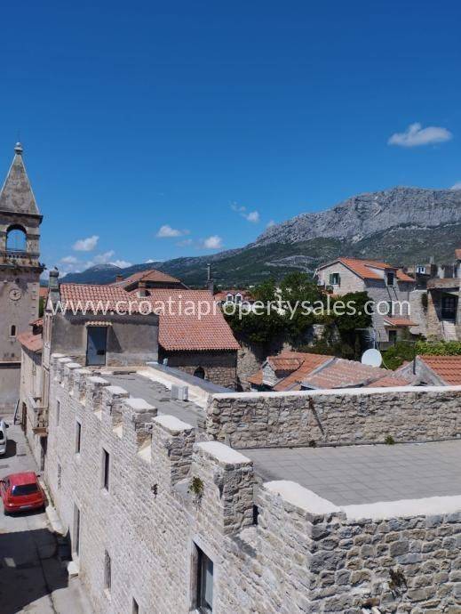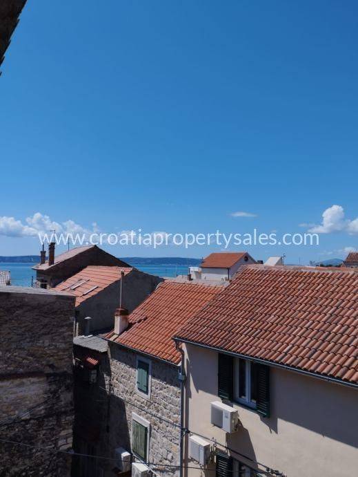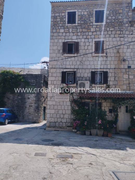 Ein Reihenhaus aus Stein mitten im Zentrum einer Kleinstadt, nur 50 m vom Meer entfernt.