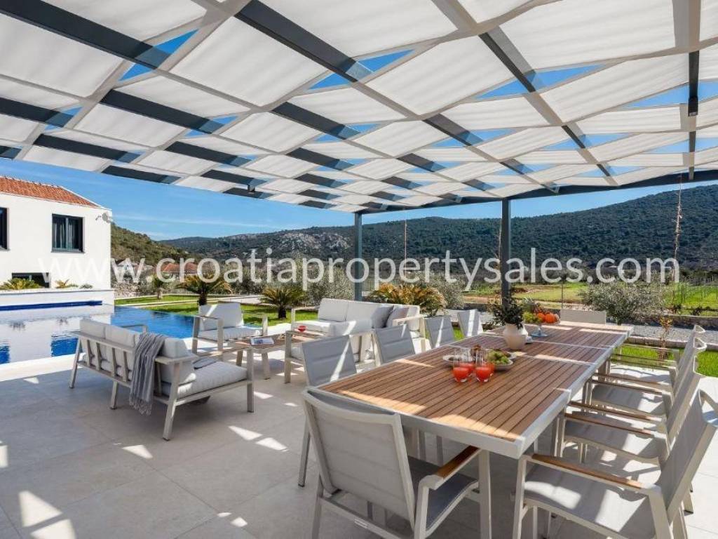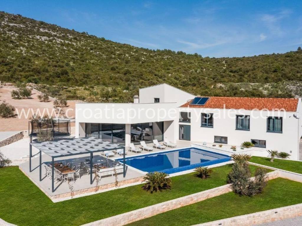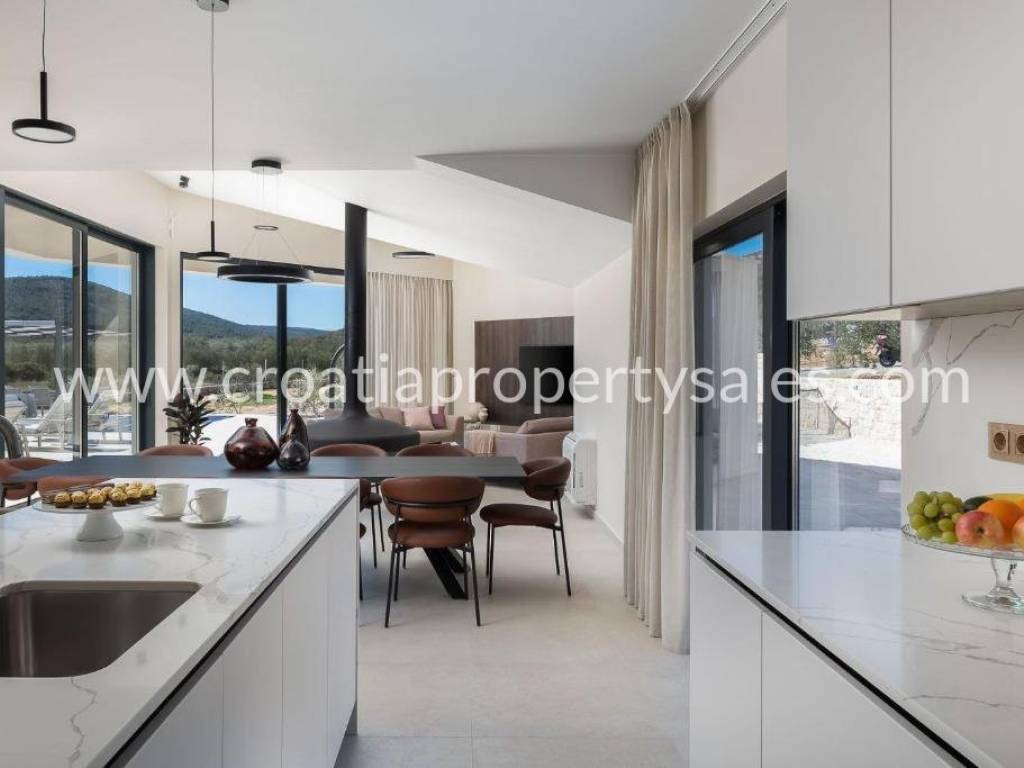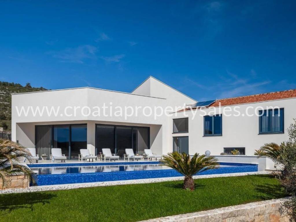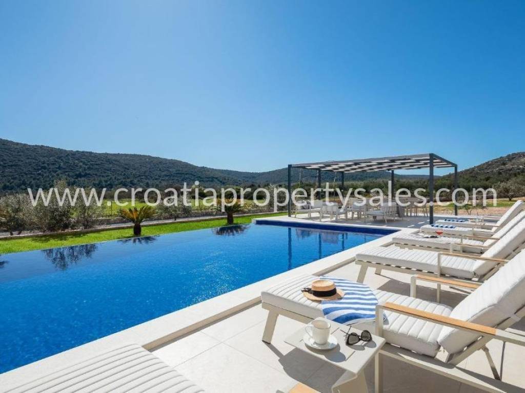 Eine wunderschöne Luxusvilla in einer kleinen Stadt unweit der Stadt Trogir.