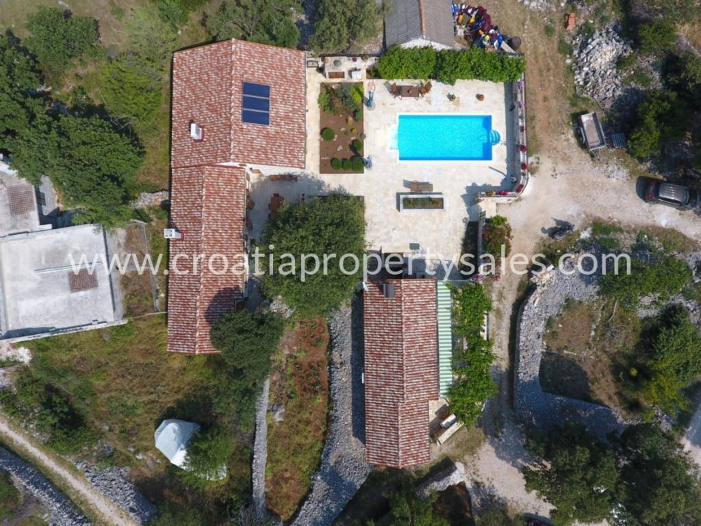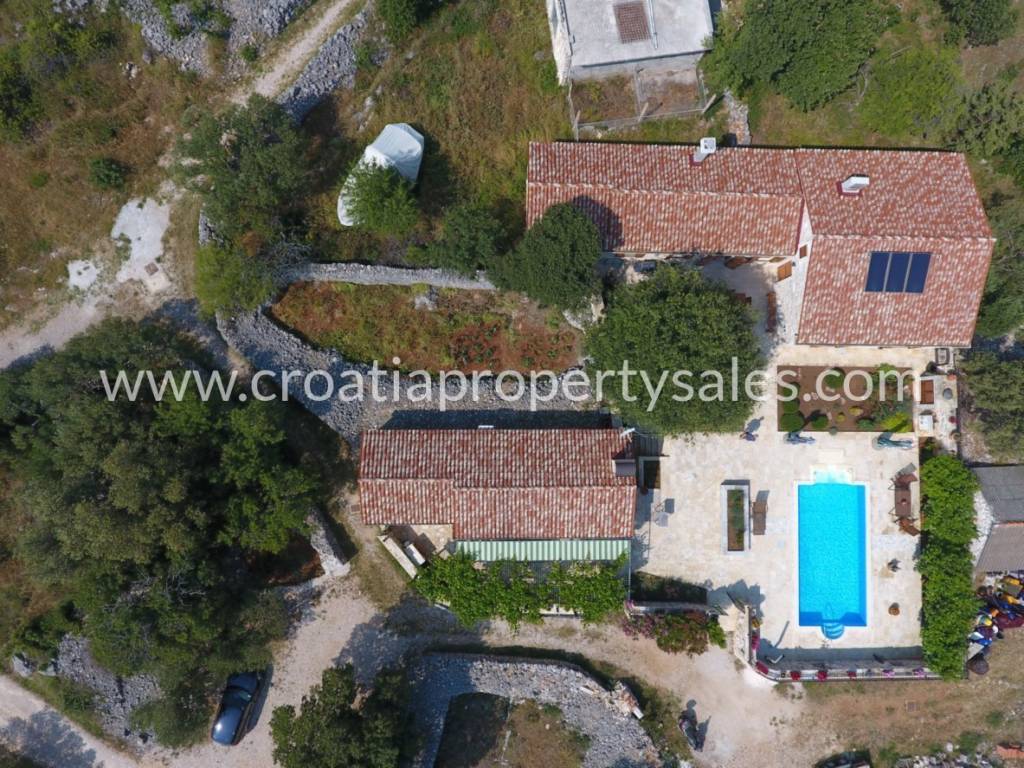Durch die Küche erreichen Sie den zweiten Teil desselben Gebäudes, der zwei Schlafzimmer und ein Badezimmer sowie eine Werkstatt mit einer Innentreppe zum Dachboden hat, die als Speisekammer genutzt wird.