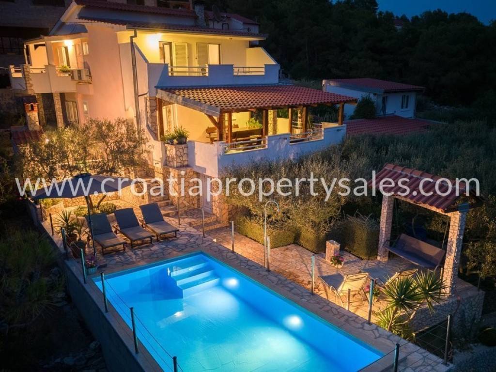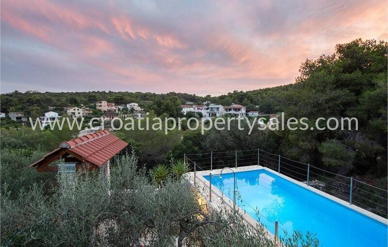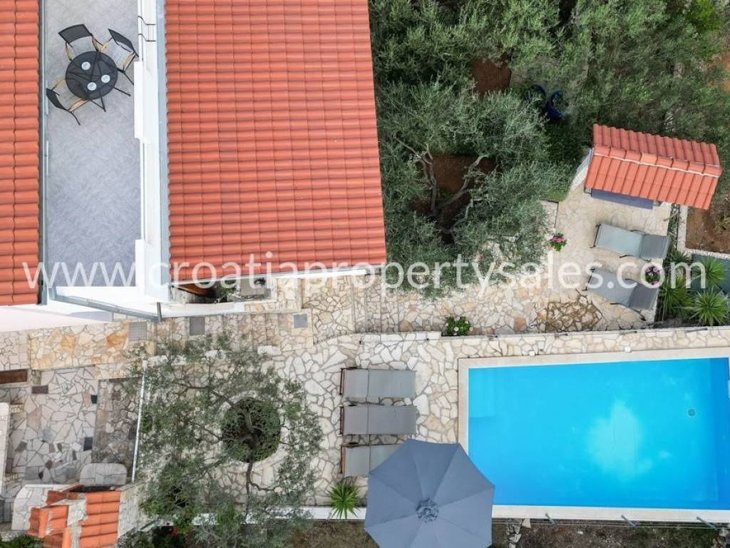 Auf der Südseite der Insel Vis, in einem kleinen Dorf in sehr ruhiger Lage, umgeben von einem Pinienwald, steht ein freistehendes Einfamilienhaus mit Swimmingpool zum Verkauf.