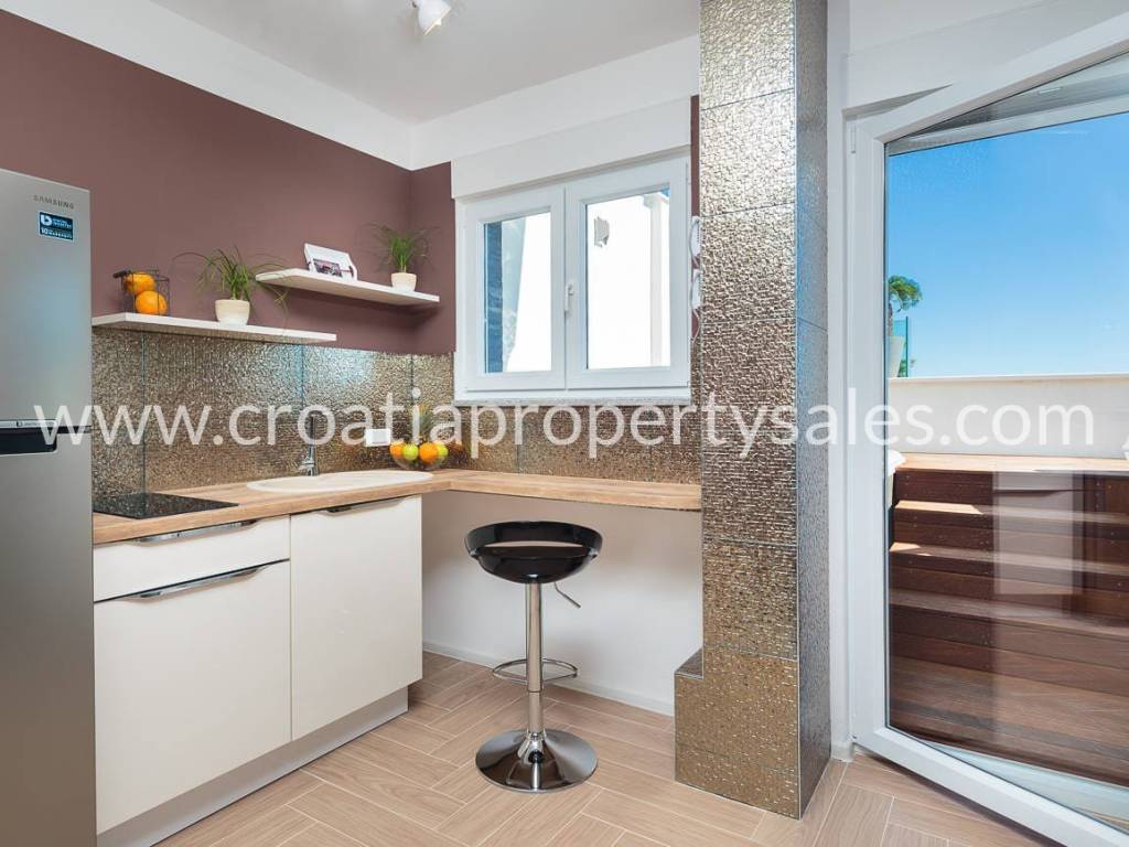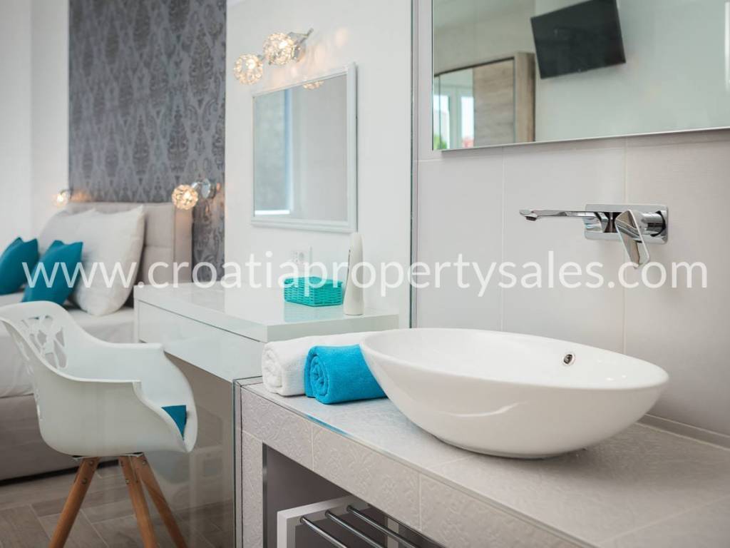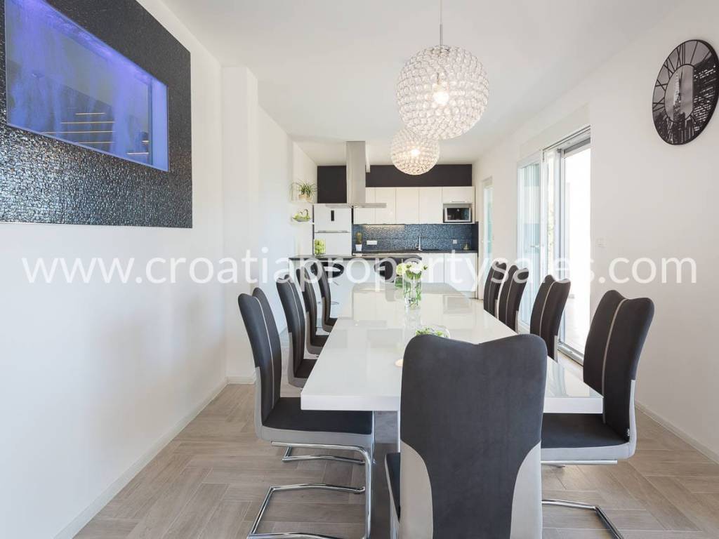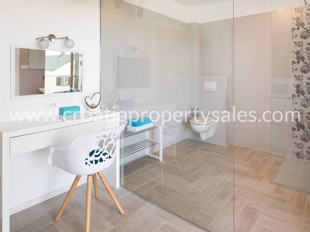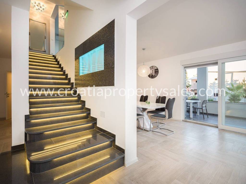 Schöne Villa mit Pool auf dem Dach und Terrasse, nur wenige Gehminuten vom Strand entfernt. Die Villa hat eine Bruttofläche von 410 m2 und befindet sich auf einem Grundstück von 460 m2. Die Villa ist komplett eingerichtet und ausgestattet und besteht aus einem Wohnzimmer mit Küche und fünf Schlafzimmern mit Badezimmern. Von der Dachterrasse mit Swimmingpool von 7,8 m2 x 2,8 m2 hat man einen schönen Blick auf das Meer und die Umgebung. Parkplätze sind im Garten vorhanden.