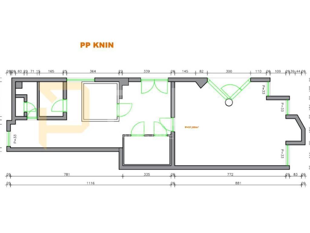 Zu vermieten: Gewerbefläche von 97 m im Herzen von Knin. Der Raum eignet sich für alle Arten von Aktivitäten - Büros, Dienstleistungen, Handel oder Produktion.