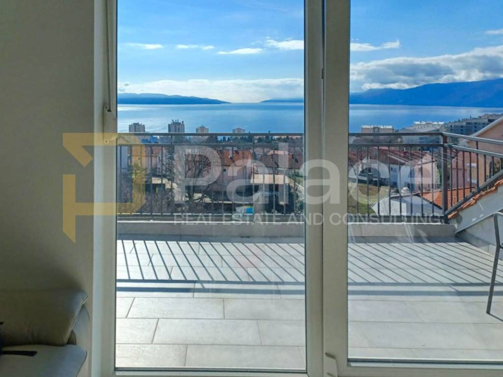 Die Wohnung befindet sich in einem privaten Gebäude auf einer Etage mit eigenem Eingang und absoluter Ruhe. Sie besteht aus zwei Schlafzimmern, einem zusätzlichen Raum, der als Büro genutzt werden kann - die perfekte Lösung für die Heimarbeit -, einem geräumigen Wohnzimmer mit Essbereich, Küche und Badezimmer. Vom Wohnzimmer aus gelangt man auf eine geräumige Terrasse mit Panoramablick auf das Meer und die Kvarner Bucht.