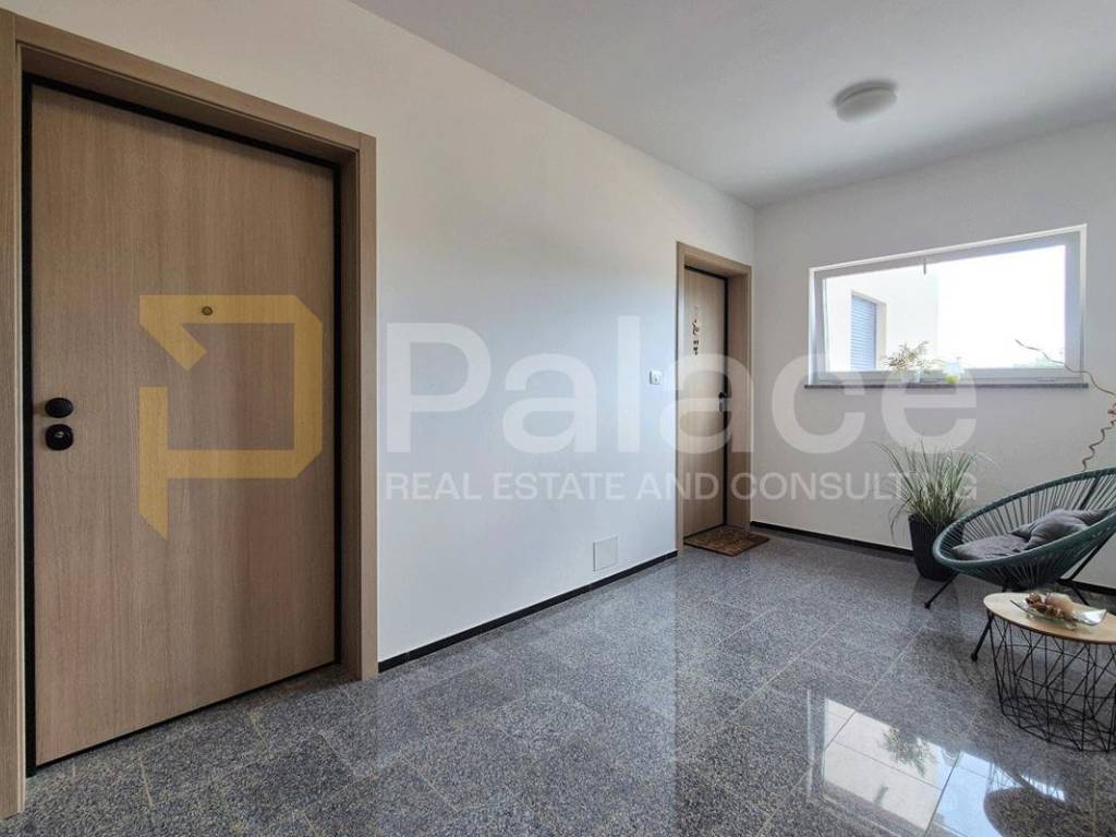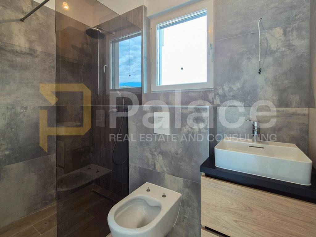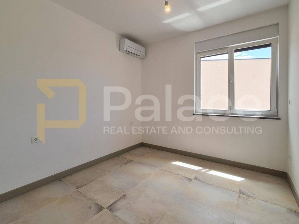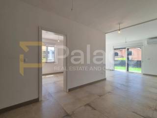 Die Wohnung besteht aus zwei Schlafzimmern und zwei elegant gestalteten Badezimmern, von denen eines über ein eigenes en-suite Badezimmer verfügt. Der offene Wohnbereich mit Küche und Esszimmer bietet ein außergewöhnliches Gefühl von Weite und natürlichem Licht. Vom Wohnbereich aus gelangt man auf die überdachte Terrasse und den großen Garten von 317 m perfekt, um warme Tage und Abende zu genießen.