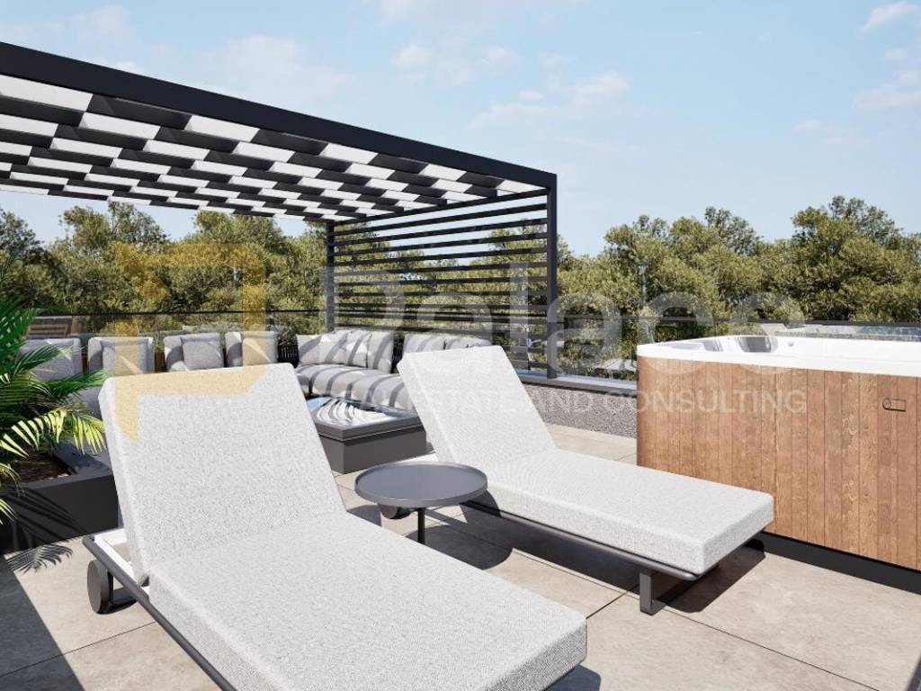 -Dachterrasse mit Jacuzzi und Pergola