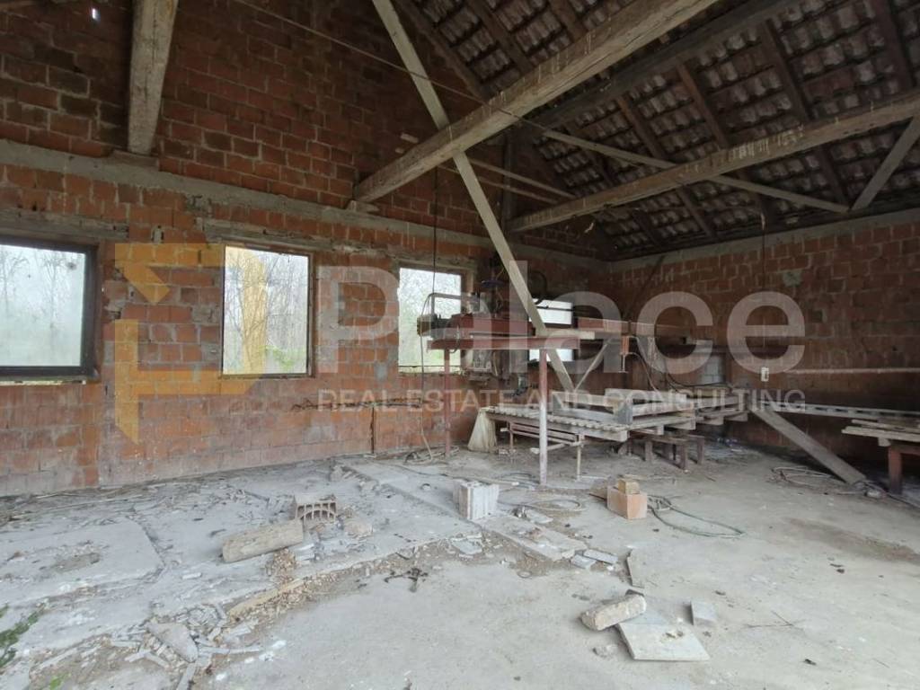 Auf dem dazugehörigen Grundstück von 5860 m2 befindet sich eine halbgeschlossene Halle, Abmessungen 11 x 7 m, in der Steinschneidemaschinen untergebracht sind.
