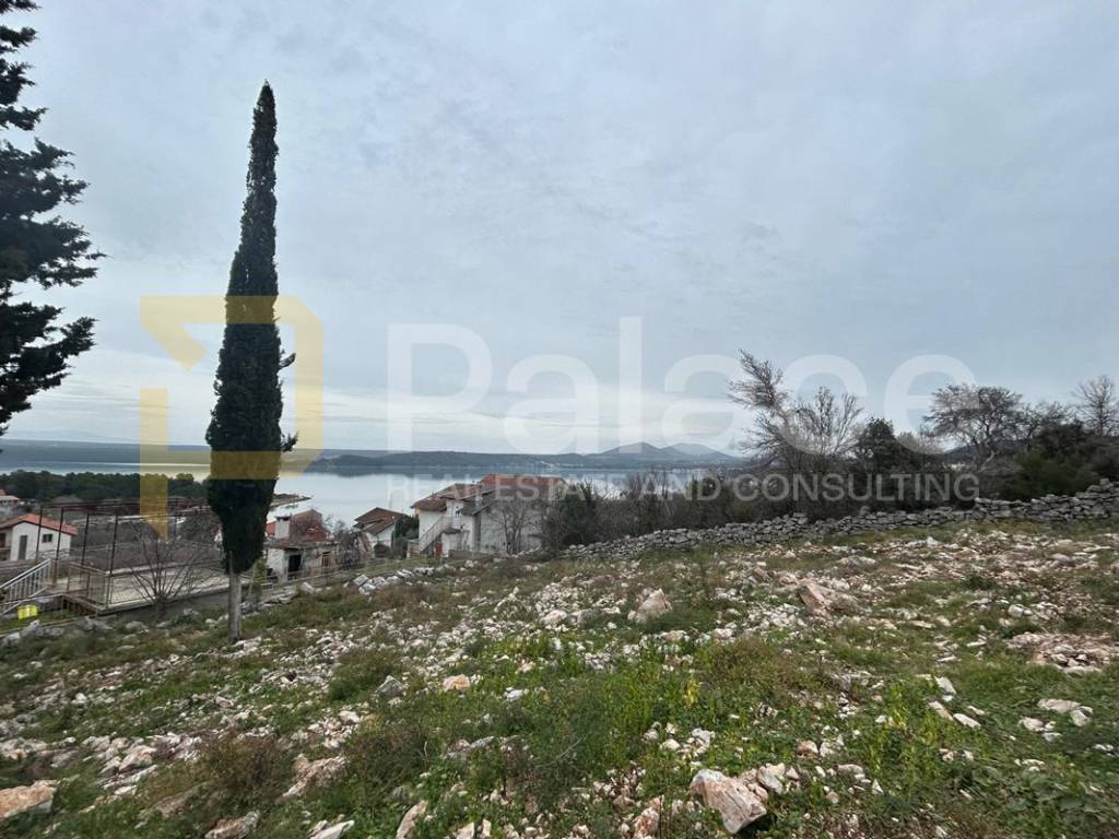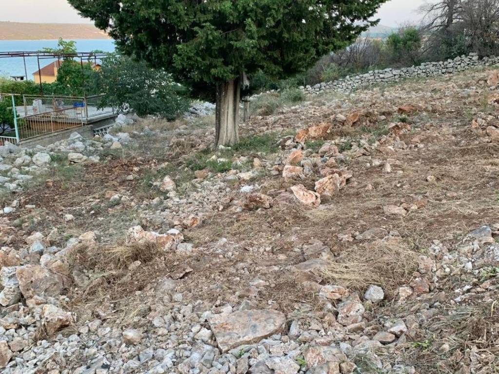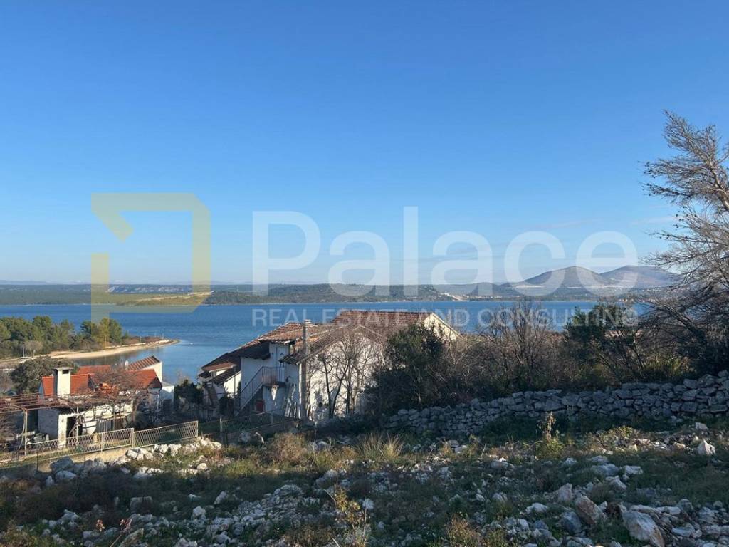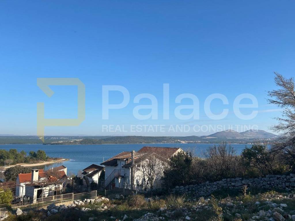 Vom Grundstück aus haben Sie Blick auf den Prokljansko-See und teilweise auf benachbarte Häuser. Das Grundstück ist geräumt.