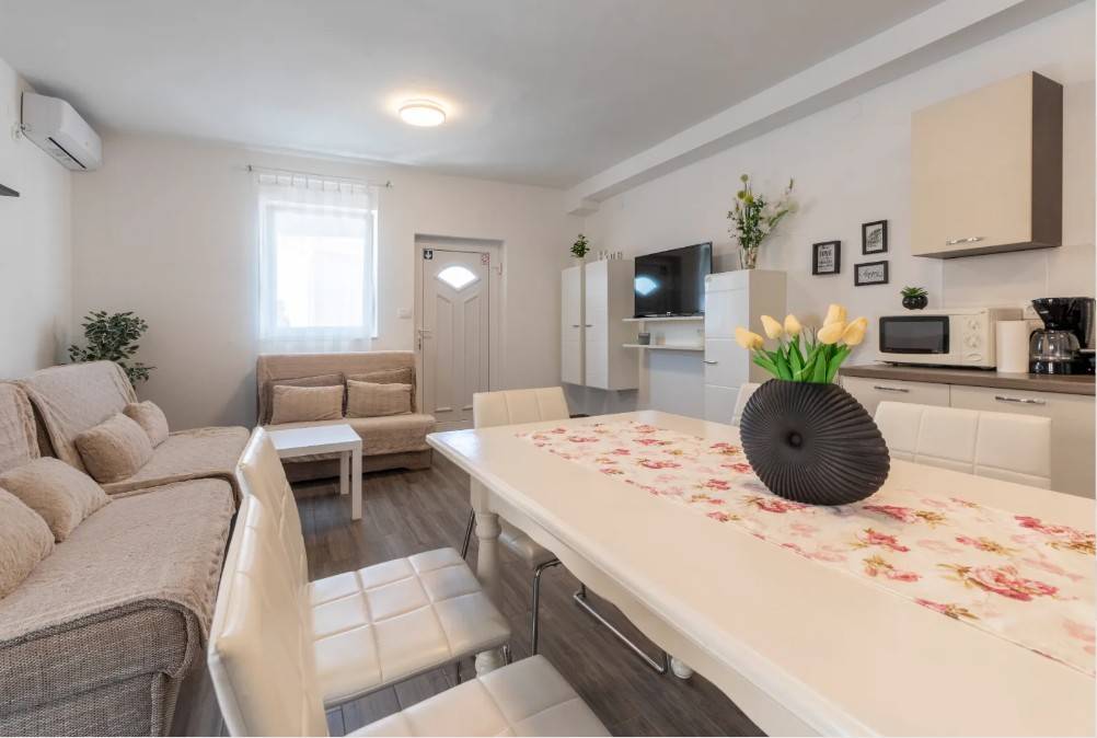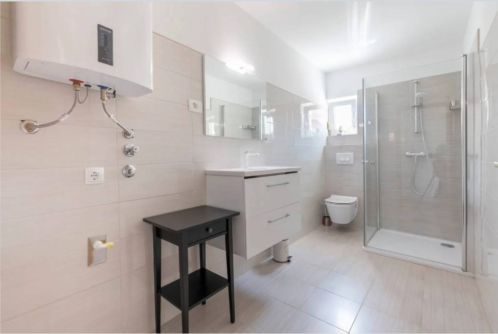 Zum Verkauf steht eine Maisonette-Wohnung, die maximale Privatsphäre und Komfort bietet. Das Erdgeschoss dieser charmanten Immobilie verfügt über ein geräumiges Wohnzimmer mit offener Küche und Esszimmer, ein zusätzliches WC sowie ein Schlafzimmer mit eigenem Duschbad. Eine Innentreppe führt ins Obergeschoss, wo sich ein großes Badezimmer, zwei weitere Schlafzimmer, ein Wohnzimmer mit Tee-Küche und eine Terrasse mit einem bezaubernden Blick auf das Meer befinden.
