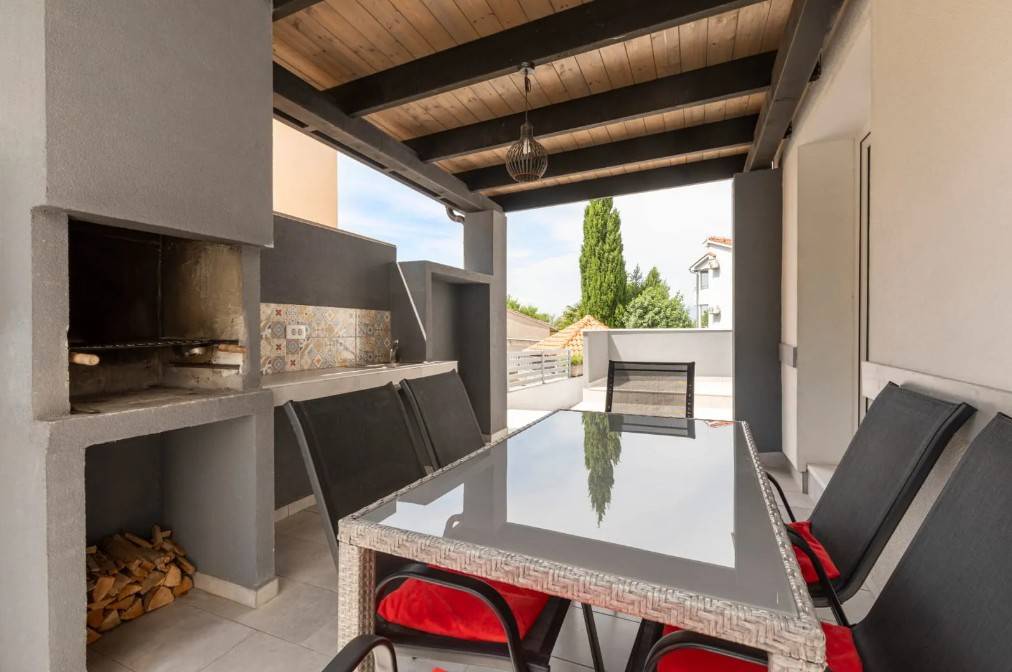 Zur Immobilie gehört eine überdachte Terrasse mit Grillplatz und Pool, ideal zum Entspannen und geselligen Beisammensein. Zwei Parkplätze sind ebenfalls im Angebot enthalten, um das tägliche Leben noch bequemer zu gestalten.