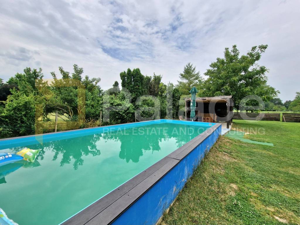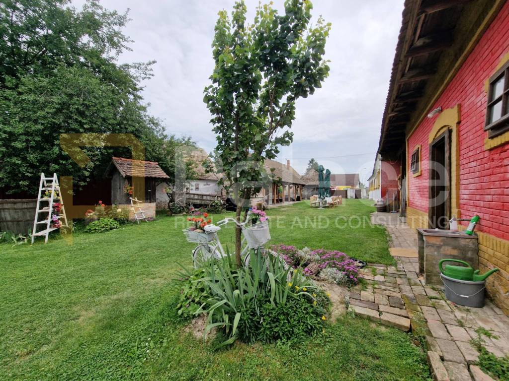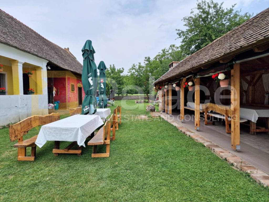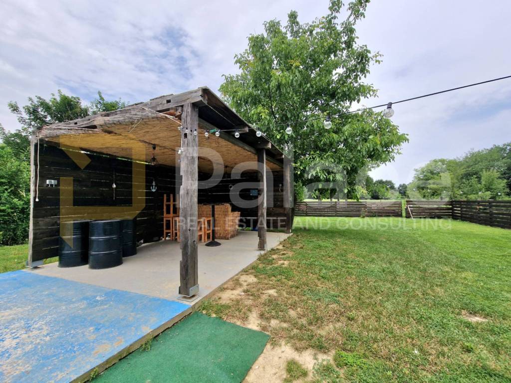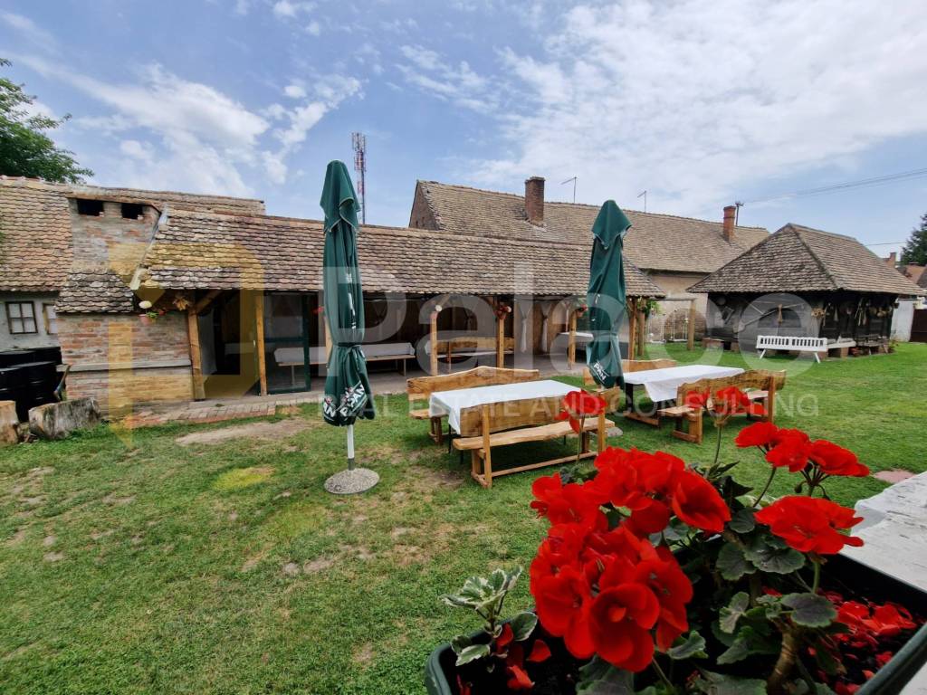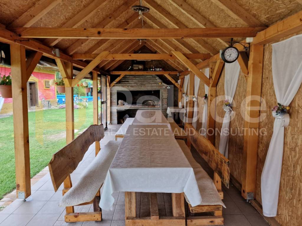 3 Apartments, einem Zimmer, einem Badezimmer, einem überdachten Lagerraum, einem Saal mit Badezimmer, einem überdachten Grillbereich und einem Bereich zum geselligen Beisammensein, einer gut erhaltenen Scheune über 150 Jahre alt, einem geräumigen und angelegten grünen Innenhof, einem automatisierten Pool (4m x 9m, Tiefe 1,55m) und einer Strandbar mit Kühlschränken, Bierhahn und Theke.