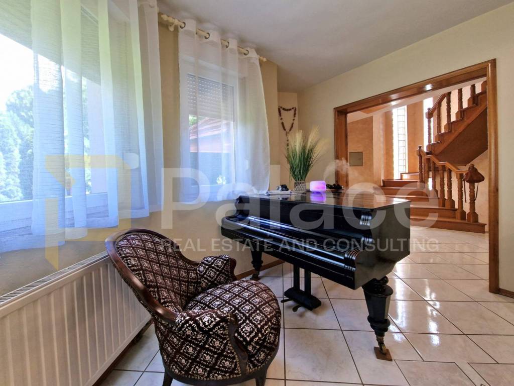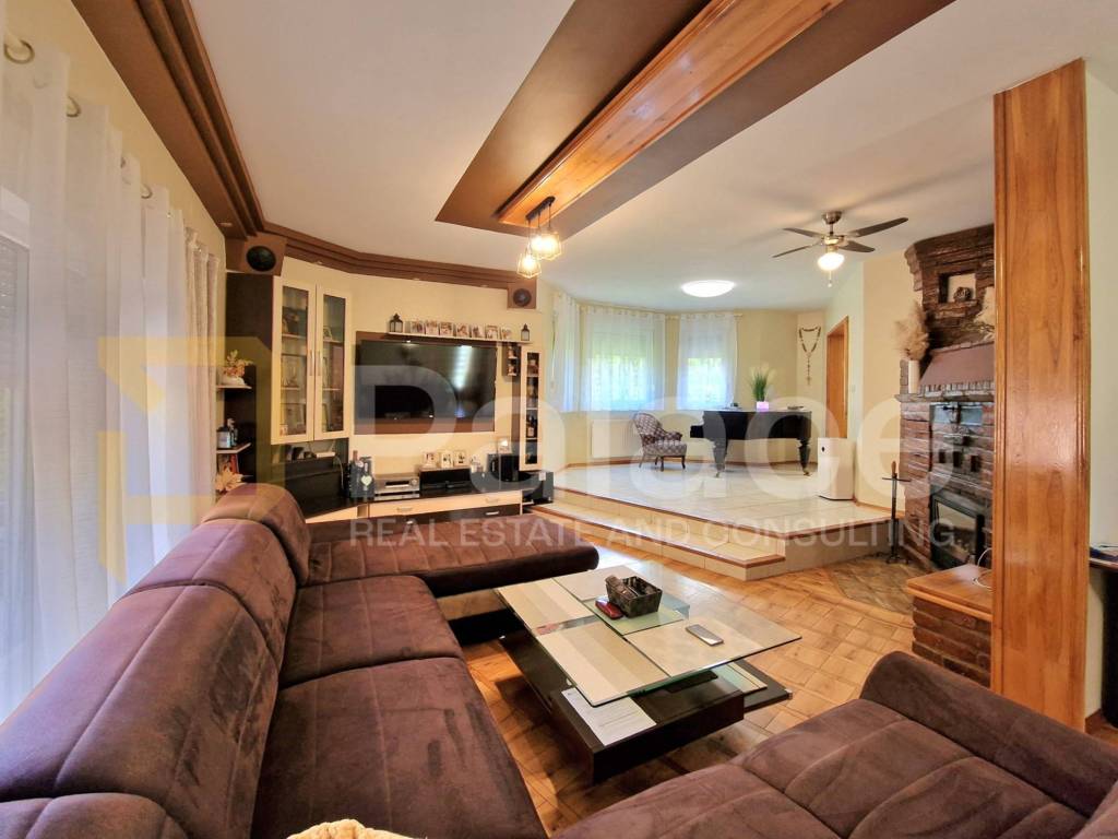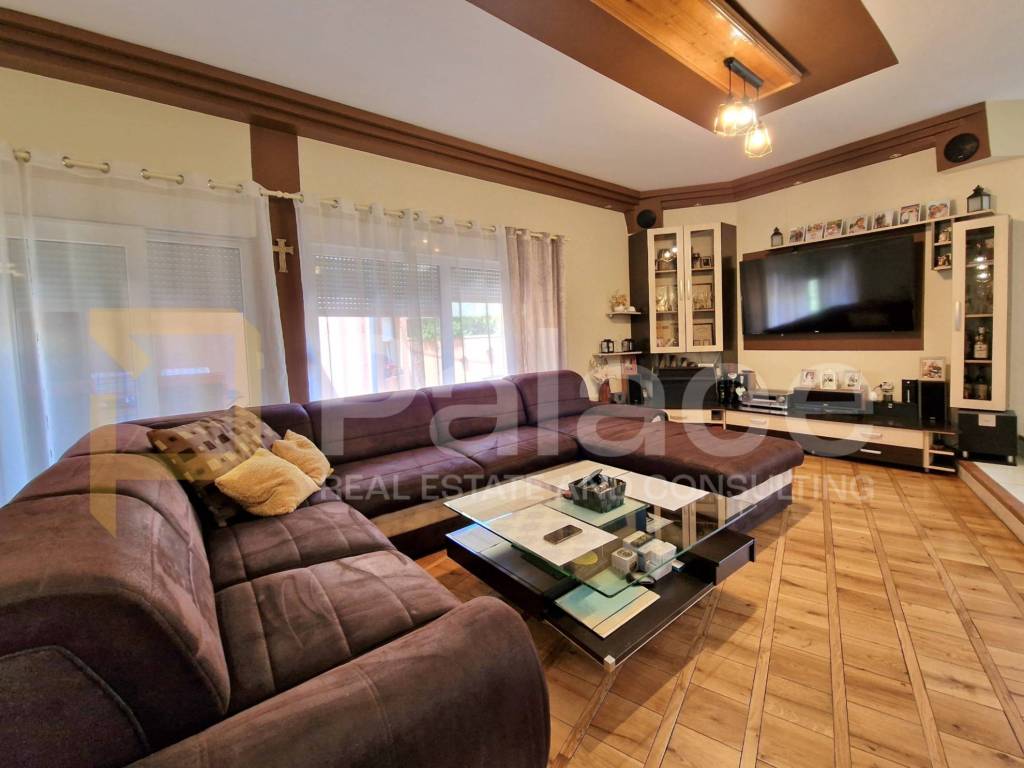Zum Verkauf steht ein luxuriöses Einfamilienhaus mit einer Fläche von 216,30 m2 mit einem großen grünen Garten und einem Swimmingpool.