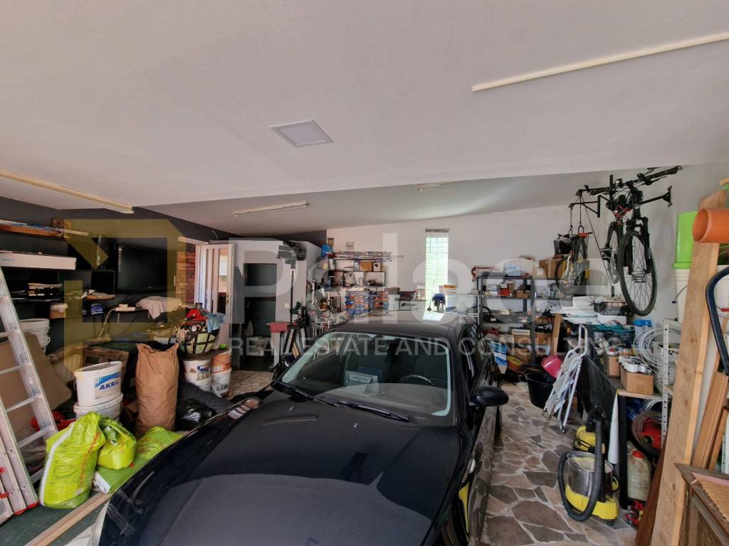 Die Garage (40,40 m2) ist thermisch isoliert und beheizt, mit automatischen Toren und einem WC. Automatisches Einfahrtstor mit Platz für zwei Fahrzeuge.