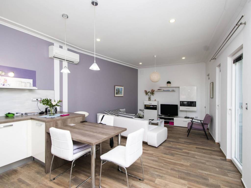 Vor dem Eingang befindet sich ein gepflasterter Teil des Innenhofs, und die Wohnung besteht aus einem Eingangsbereich, einer Küche mit Wohnzimmer, einem Schlafzimmer und einem Badezimmer. Die Wohnung ist ordentlich, hell mit vielen Fenstern, möbliert, klimatisiert und bezugsfertig. Es gibt keine Bewegungshindernisse wie Treppen, wodurch sie für Menschen mit Mobilitätseinschränkungen geeignet ist.