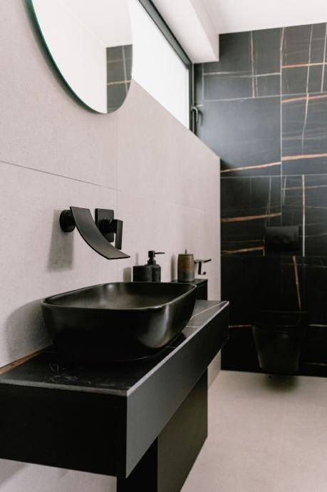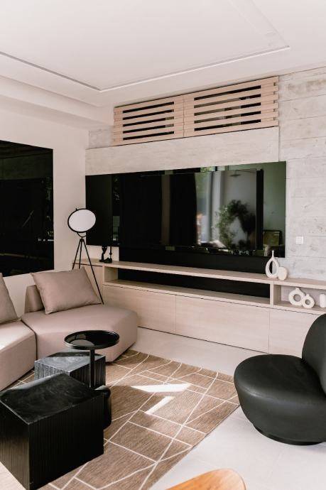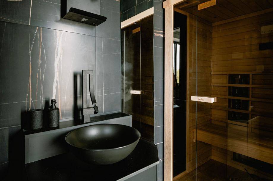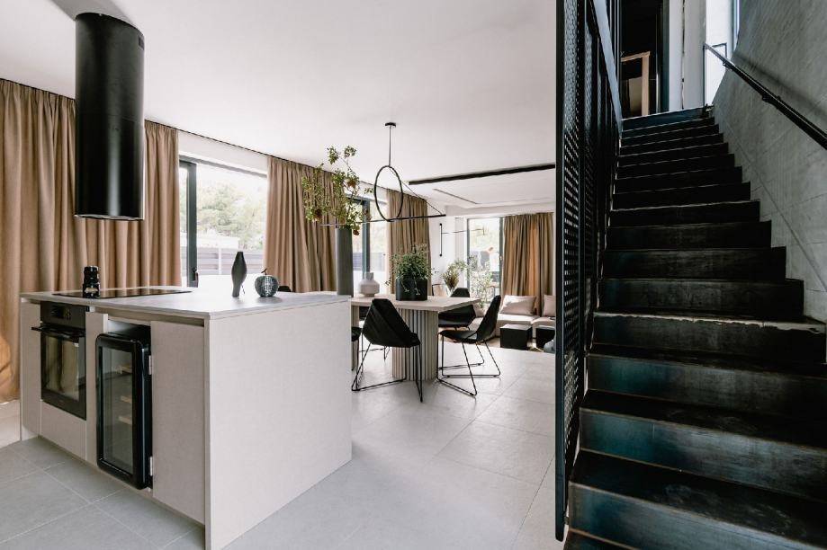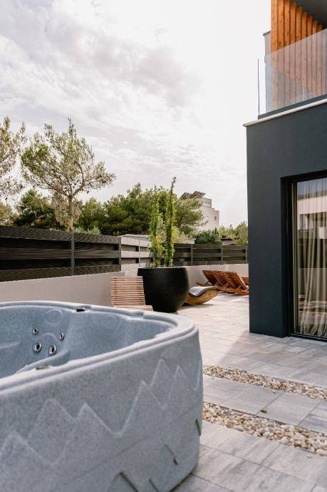 Abgesehen davon, dass das Haus äußerst harmonisch dekoriert und mit modernen Materialien erbaut ist, dominieren Erdtöne sowie Schwarz und Weiß in der Inneneinrichtung. In jedem Detail dieses Hauses wurde besondere Sorgfalt investiert, insbesondere erwähnenswert sind der Pool und der Jacuzzi im Erdgeschoss.