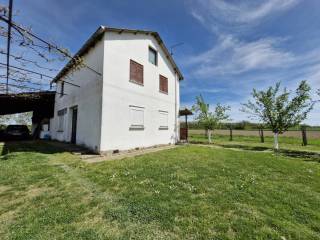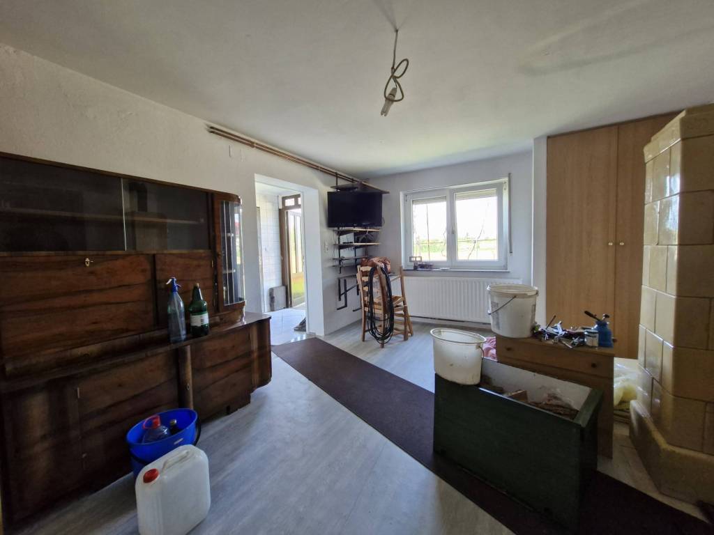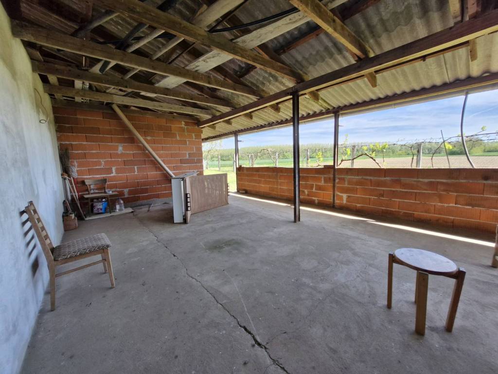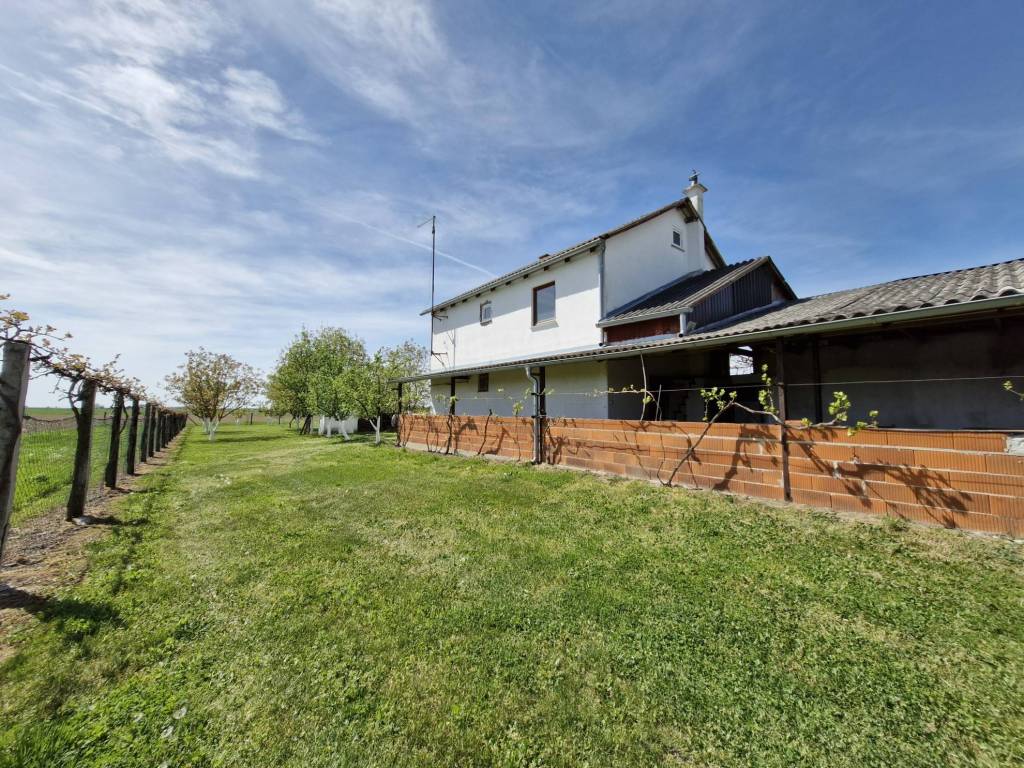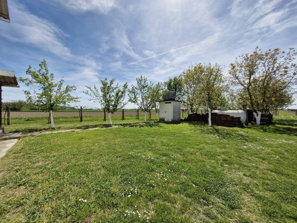 Ein Haus mit einem Obstgarten und Nebengebäuden für landwirtschaftliche und Lagerzwecke steht zum Verkauf, ideal für ein ländliches landwirtschaftliches Anwesen.